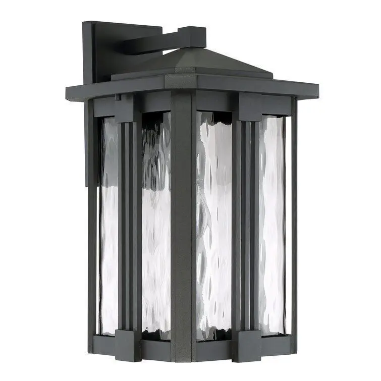 - With a slight twist on classic mission styling, the matte earth black finish is deep and rich providing the ideal backdrop for the rippling clear water glass. The straight lines and square-like details further enhance this great series.
