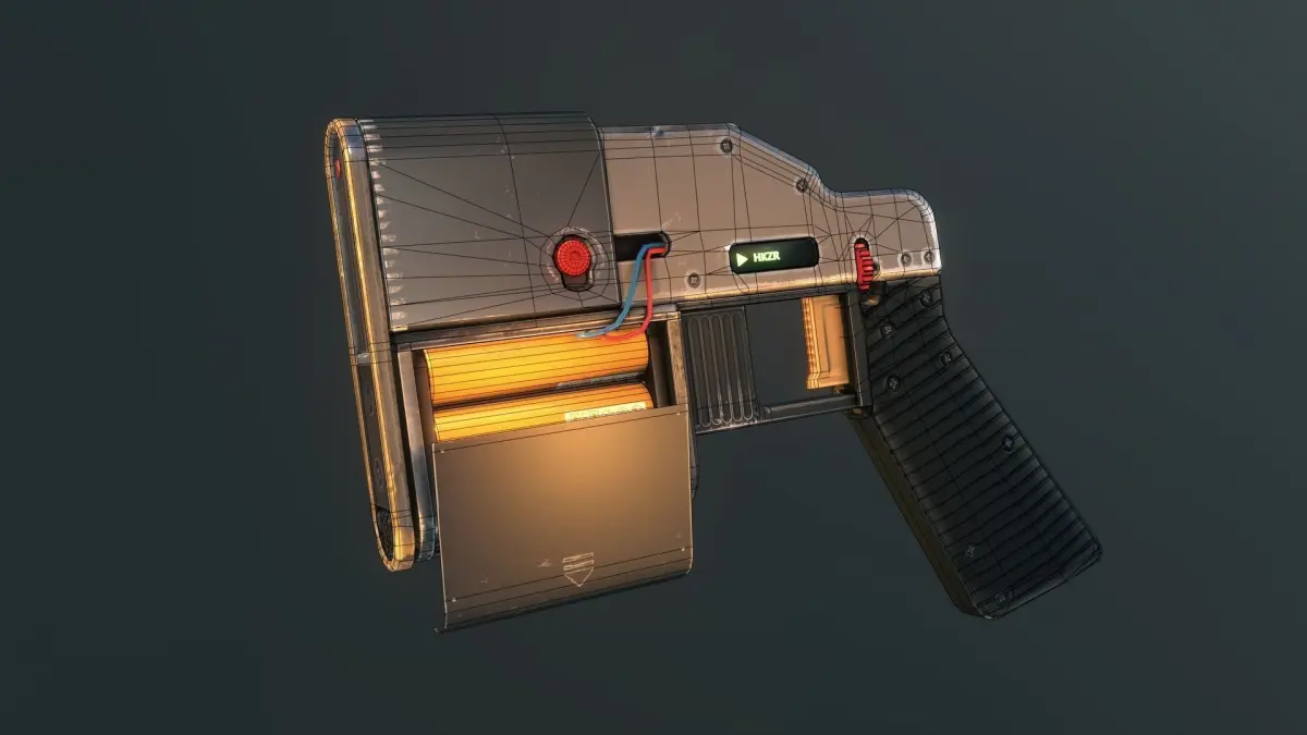The model contains the gun, batteries, battery cover and taze pins.The model uses one texture at 8k.