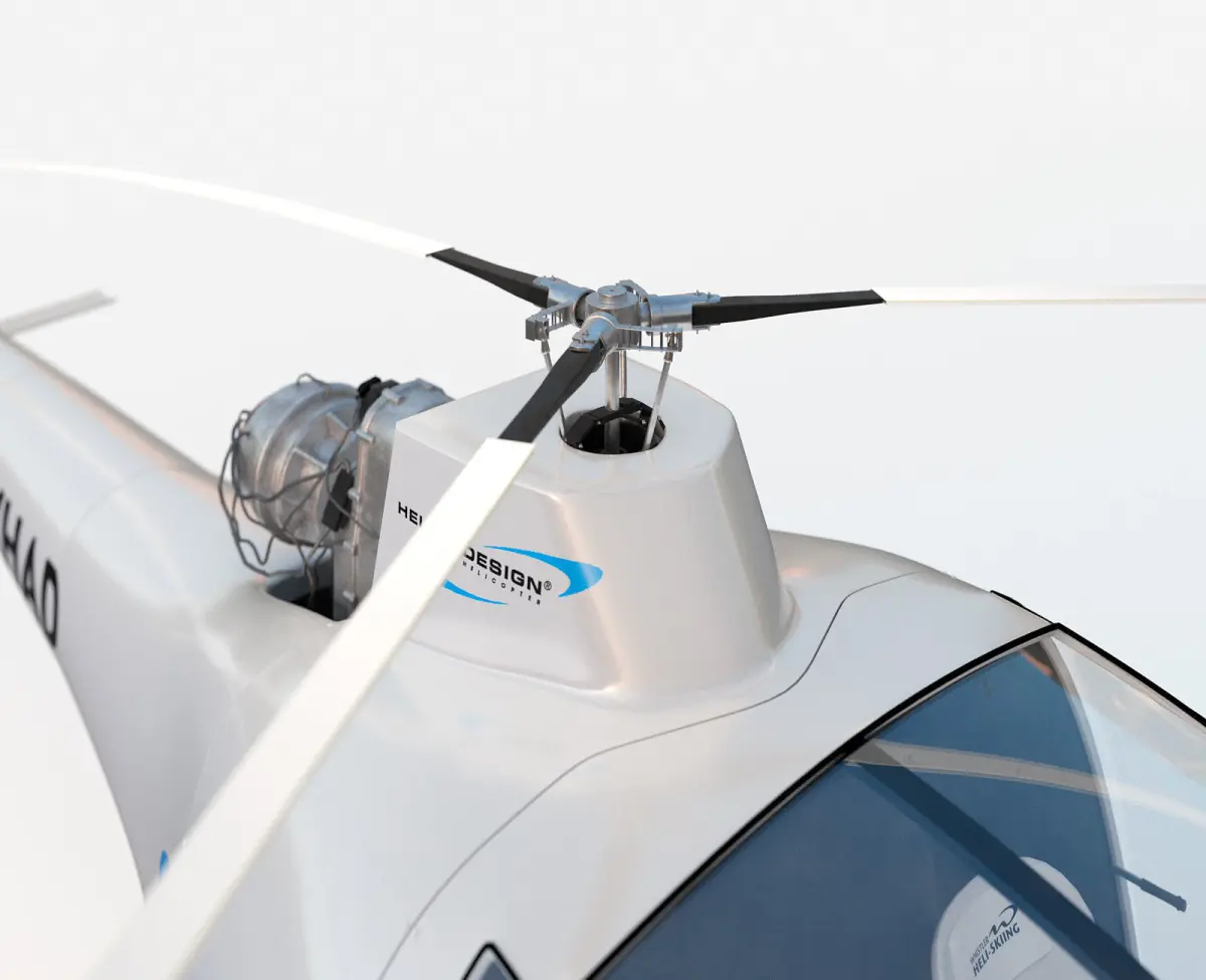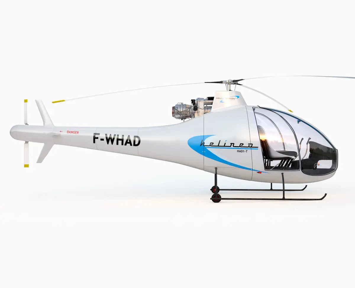 The scene contains the HAD1-T Helineo model with texture and control elements for animation. The scene is configured for rendering to the coronaterer and in-ray.
