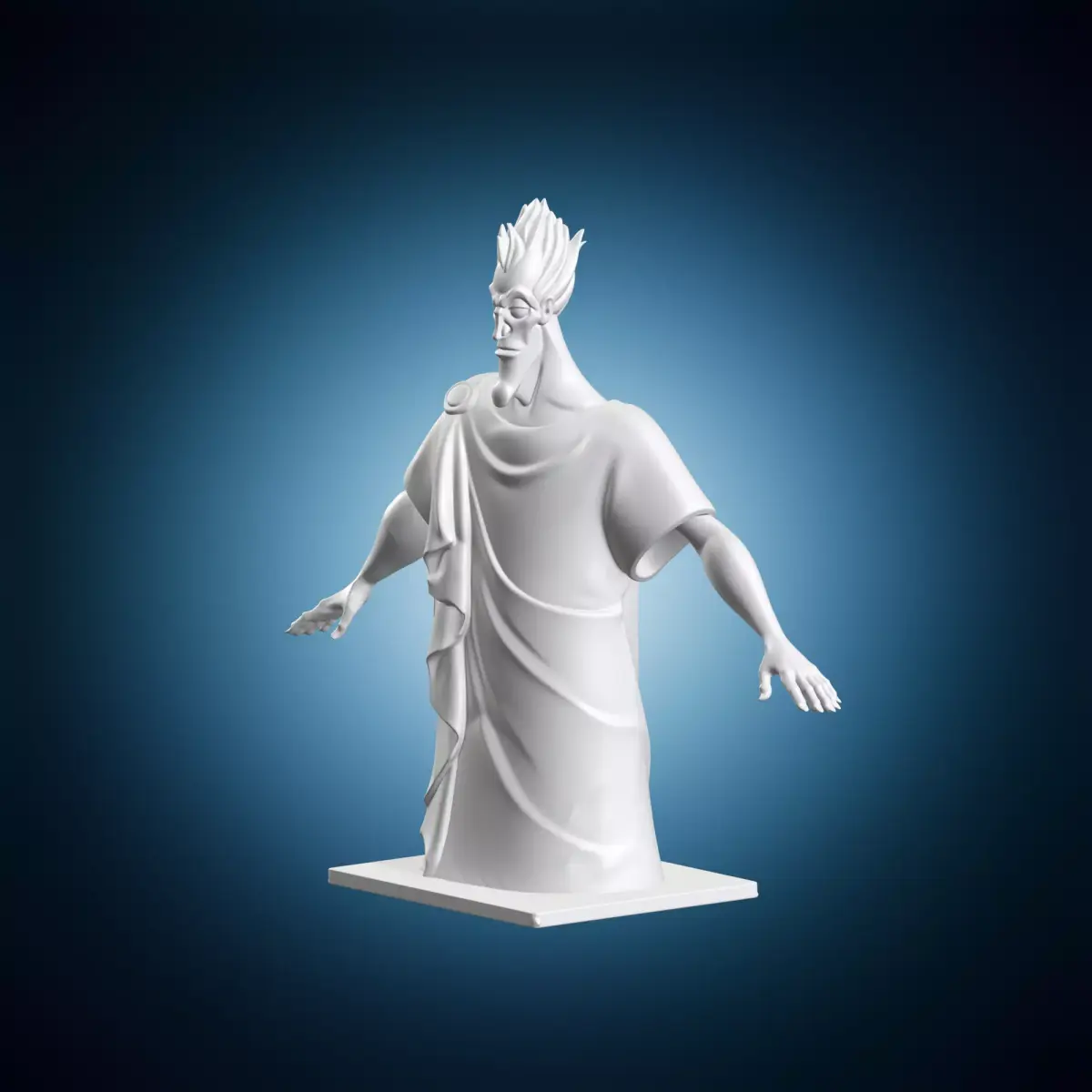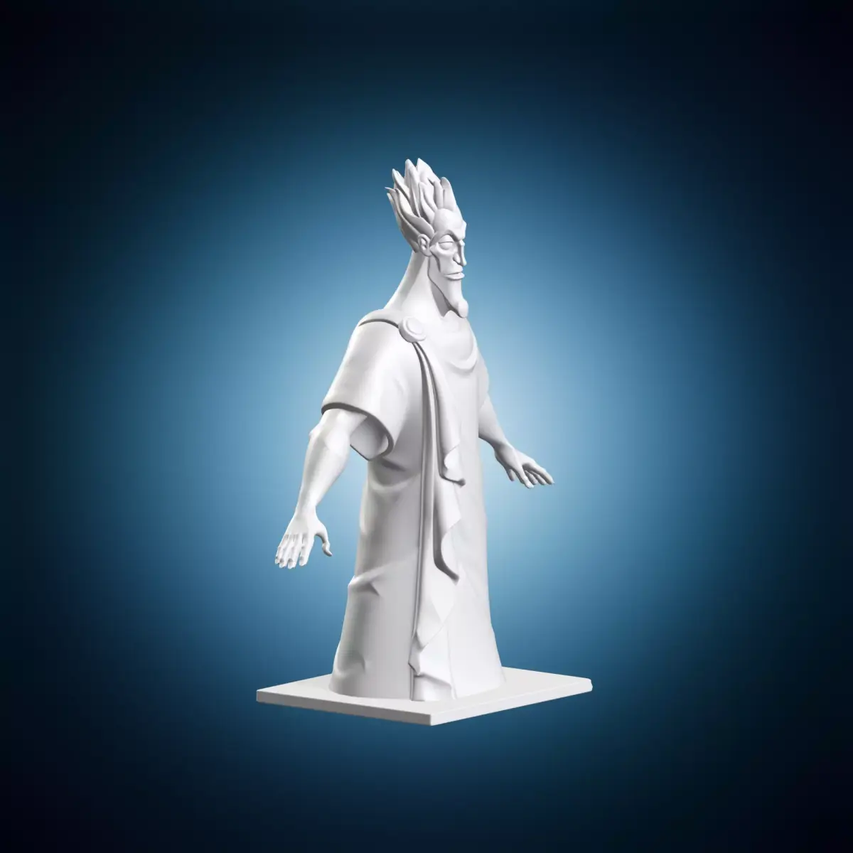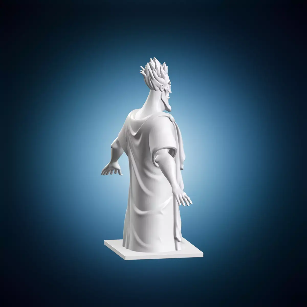 A detailed 3D model of a cartoon sculpture depicting Hades, the god of the underworld, in a realistic art style. This statue can be used for various purposes such as film production, video games, or architectural visualization. It is created with high detail and accuracy to reflect the character's features and mythology. The model is designed to be compatible with most 3D software and rendering engines.