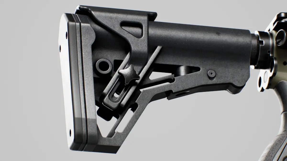 Haenel M4 Telescopic Buttstock: Game-ready 3D models ideal for professional projects in gaming, movie, animation and virtual reality. Our models are highly detailed, accurate and realistic, making them ideal for use in the most demanding projects. Most of our customers use them to create modding for games such as Ready or not, Arma3, Tarkov, DayZ, Fallout GTA V, etc.