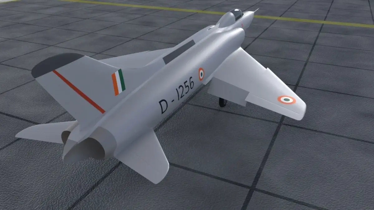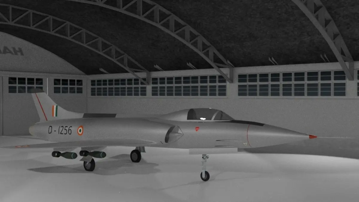 The Marut was the first indegenously developed jet fighter aircraft in India. It was a twin engine fighter bomber with four pylons on the wings carrying up to 1800kg bombs. It had a retractable rocket pack behind the nose landing gear carrying 50 rockets. Although it was designed to reach speeds up to mach 2, but due to underpowered engines it was limited to mach 1. The Marut was used in the 1971 Indo-Pakistani war and proved to be a capable ground attack aircraft.