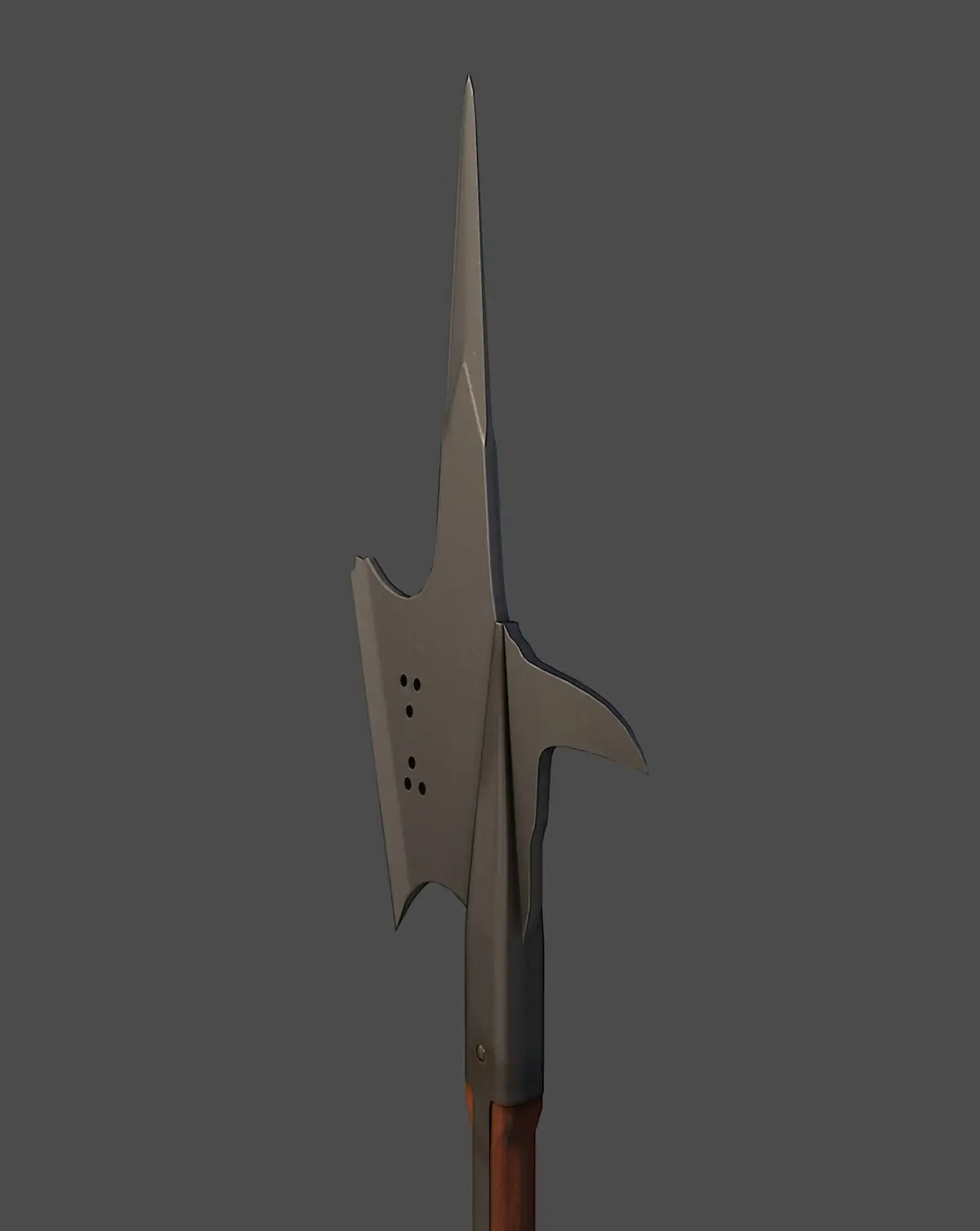 The model is an exact replica of medieval polearm weapon,known as Halberd. The Halberd has 3 major parts : Axe head, The hook opposite the axe and the spiked tip. The polearms were very effective as a group weapon. A group of soldiers could form a line with extended polearms making an almost impentrable and very dangerous barricade of spiked points.A polearm was a very useful weapon that a foot soldier could use to attack a knight or soldier mounted on a horse. It enabled him to reach up and attack. And some variations of polearms also enabled the bearer to reach up, hook the mounted rider and pull him down. They were effective as solo weapons.The model has full set of texture maps:Diffuse 2048 x 2048Normal 2048 x 2048Spec & Gloss (Gloss is in the alpha channel) 2048 x 2048Height 2048 x 2048