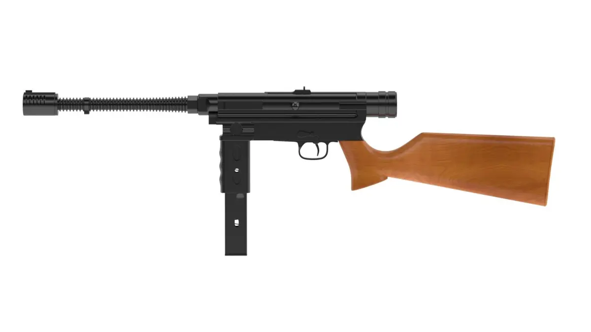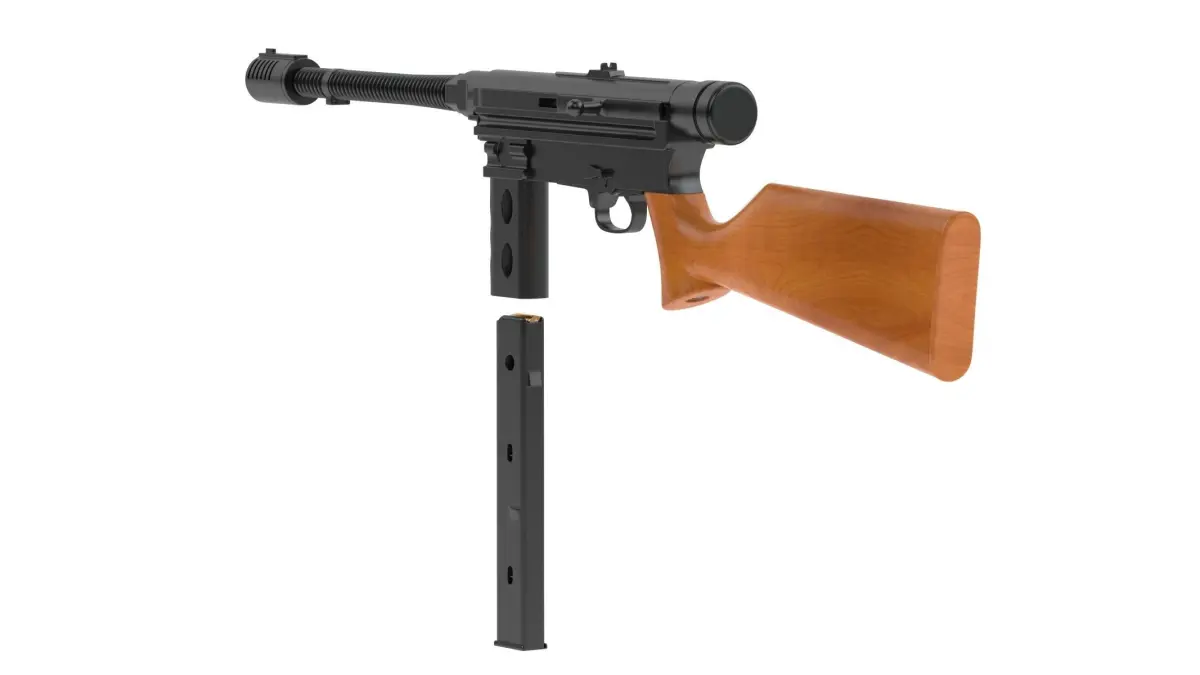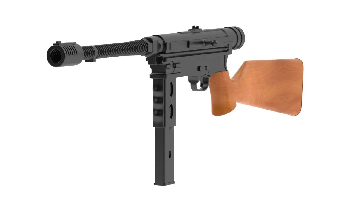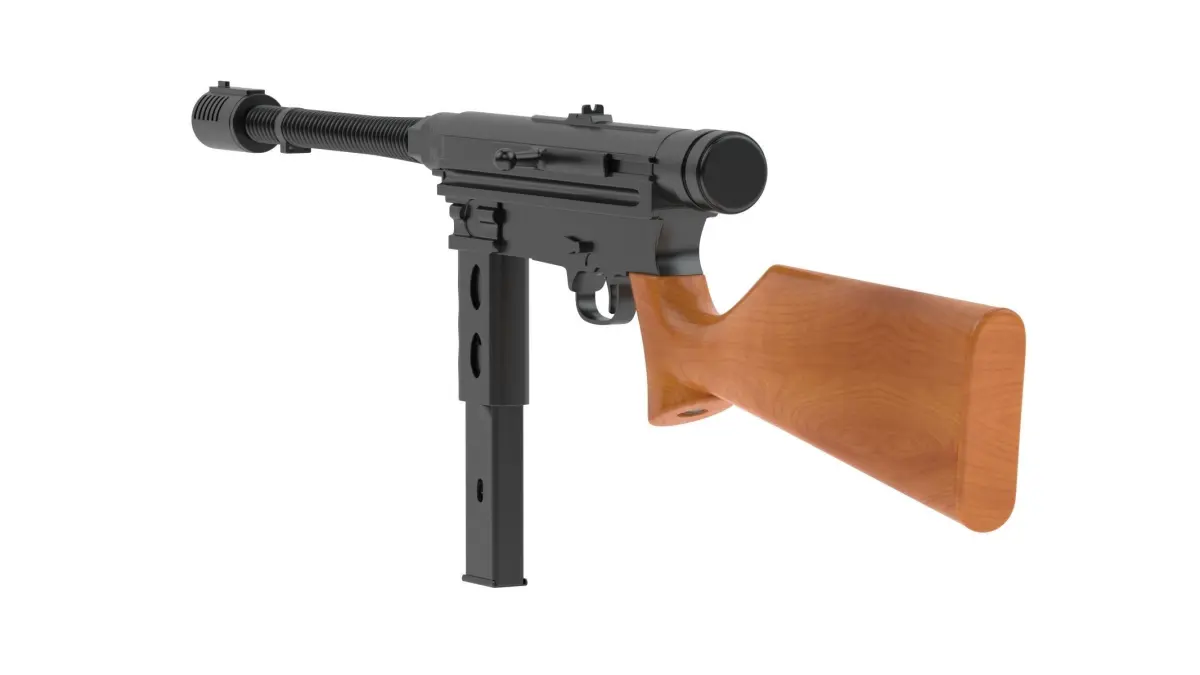 The Halcon M-1943 is a submachine gun of Argentine origin and is chambered in both 9×19mm Parabellum, used by the Argentine Army, and in .45 ACP for the police, though neither used it in front-line roles.