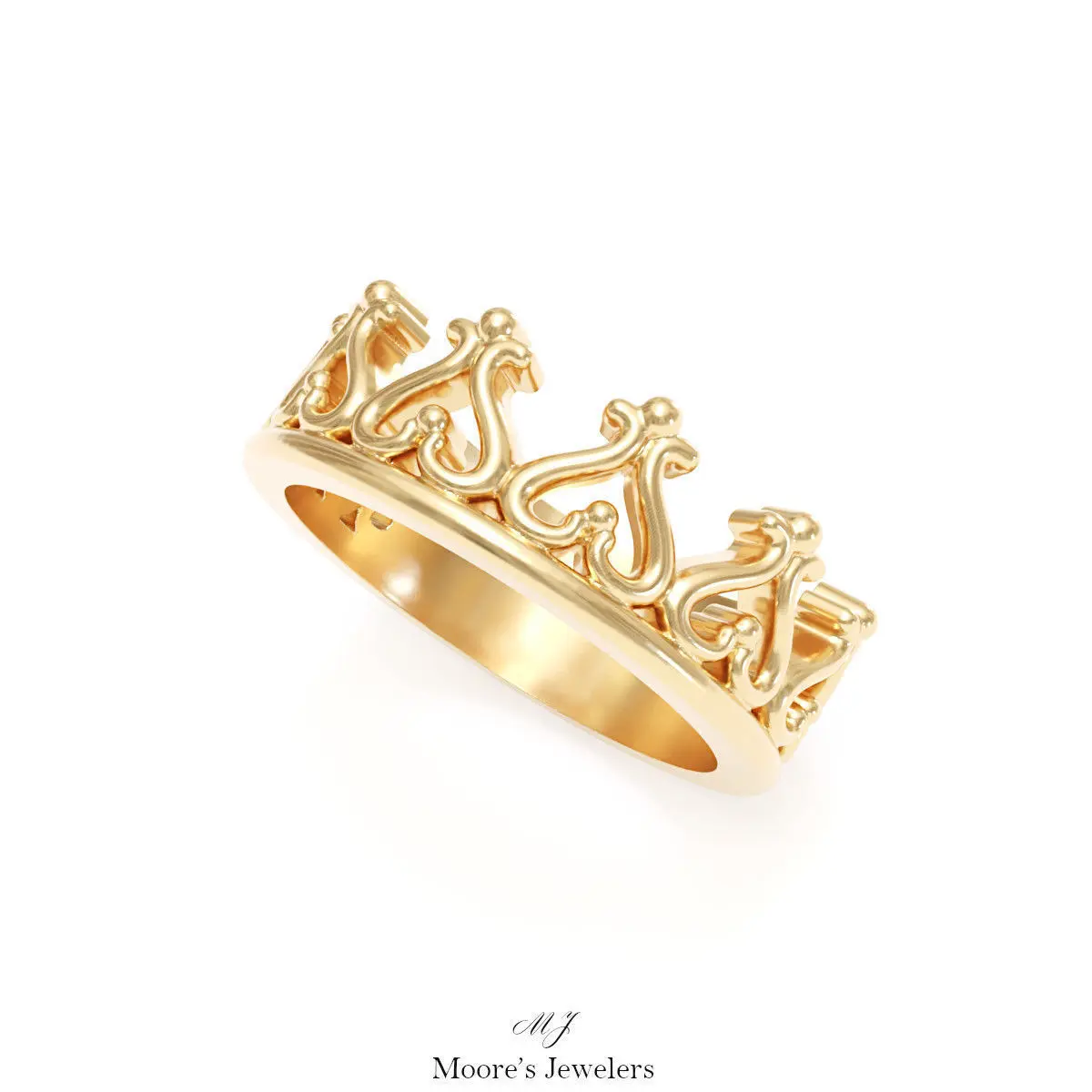 The crown pattern only stretches about half way around the ring before transitioning into the lower half of the shank. This leaves enough of a sizing stock to easily be sized after printing.