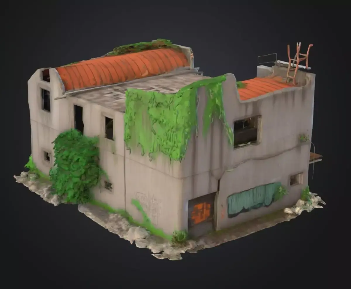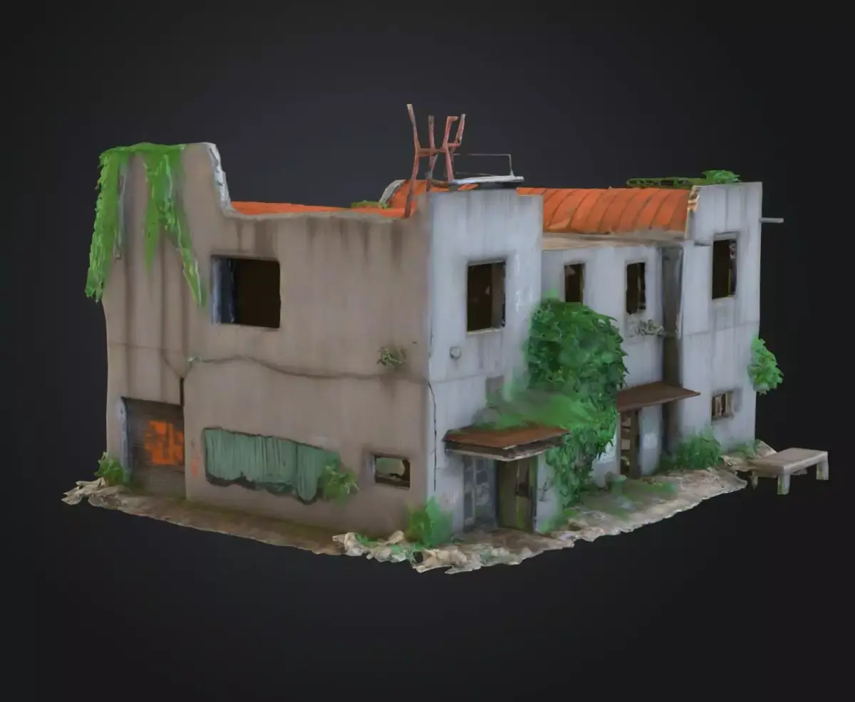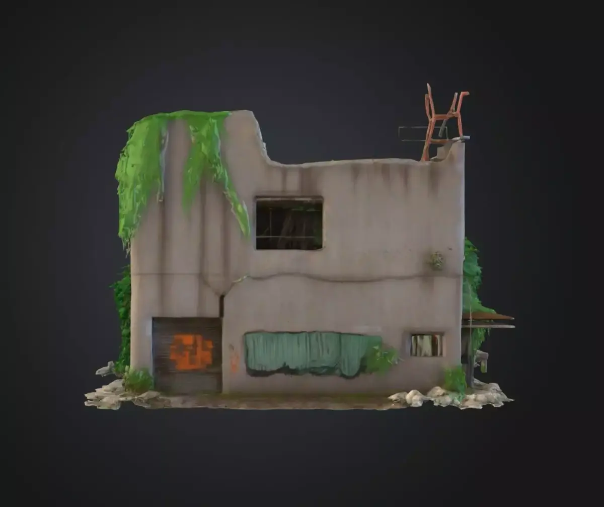 Highly detailed 3D model of a half‑destroyed two‑story building with exposed interior lighting and broken walls. Ideal for post‑apocalyptic or war‑zone environments in games, animations, and cinematic scenes. Includes realistic debris, damaged textures, and optimized mesh for Unreal Engine, Unity, or Blender.
