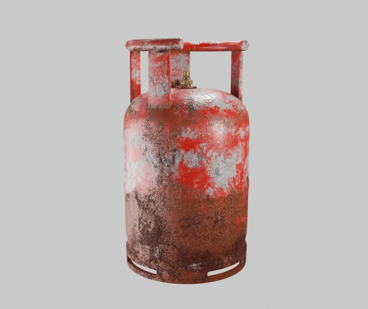 A lowpoly subdividable gas cylinder mesh with textures (Half-Rusted-Gas-Cylinder-TexturePack.zip )