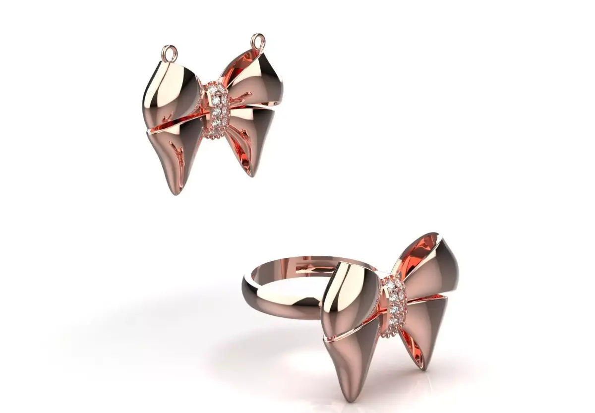 Half-set of ring and pendant jewelry with bow design, model JS0020: A symbol of brilliance and elegance
