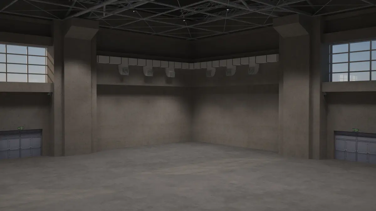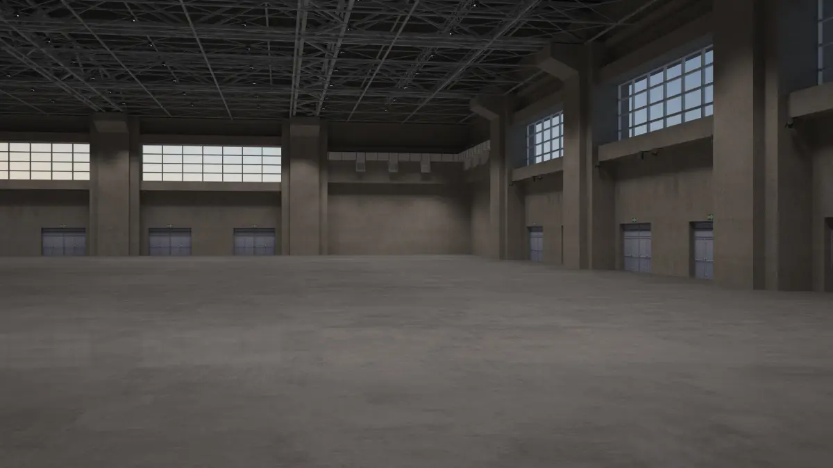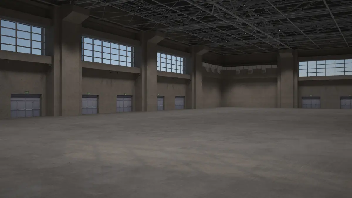 3D Hall low poly - Multifunctional hall for various purposes. Is real-world size Hall, length 98m, width 78m, height 19.5m. Hall 3D model is low poly game ready - VR ready.