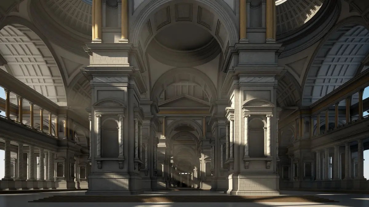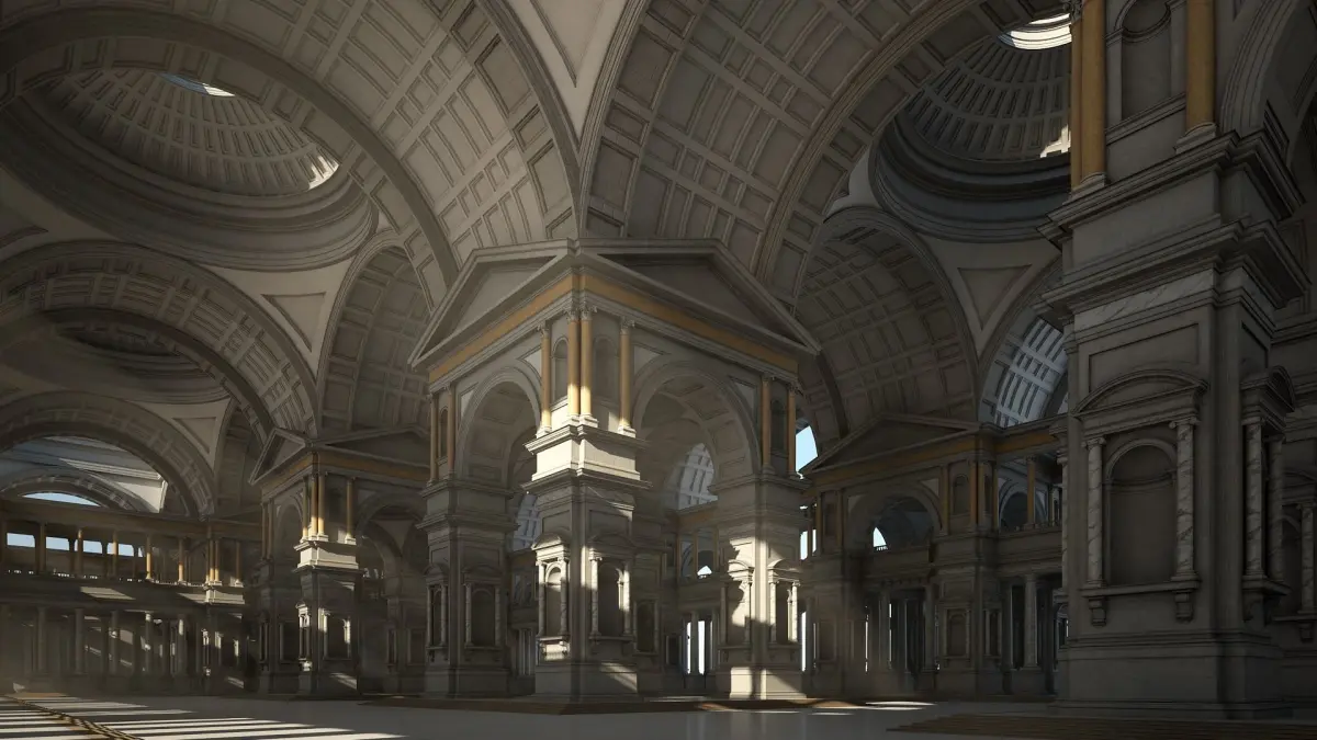 All objects have names and are organized with layers according to type of object and material. The model is composed of different objects: arches, columns, entablatures, vaults, etc.It's modulable and can be rearranged.The model uses vray materials.
