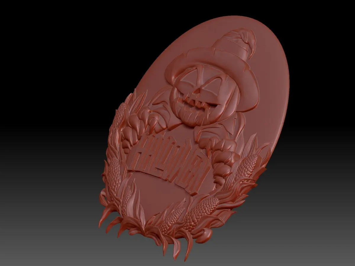 3D model of a bas-relief for Halloween. It depicts a pumpkin in a hat, a symbol of the holiday. The project is suitable for 3D printing and CNC machining.