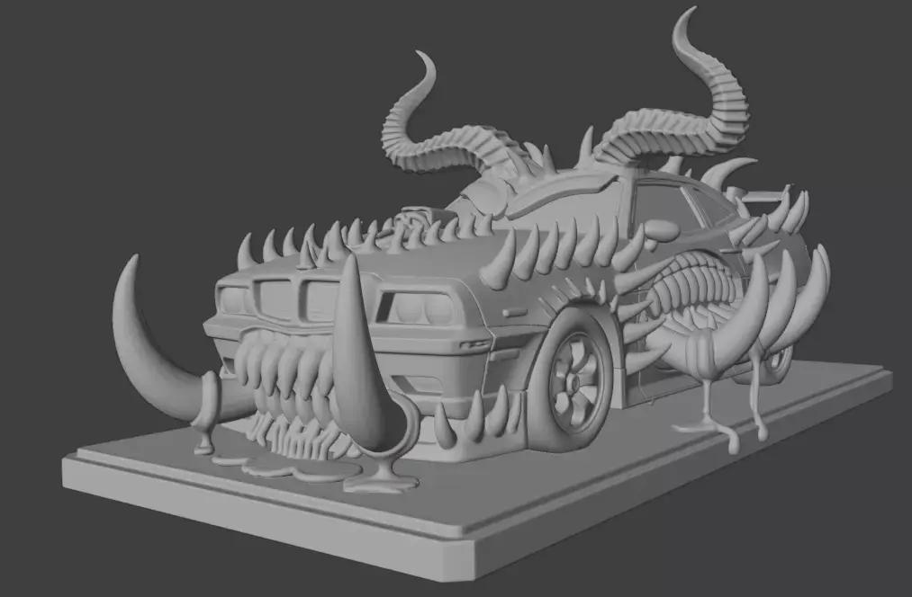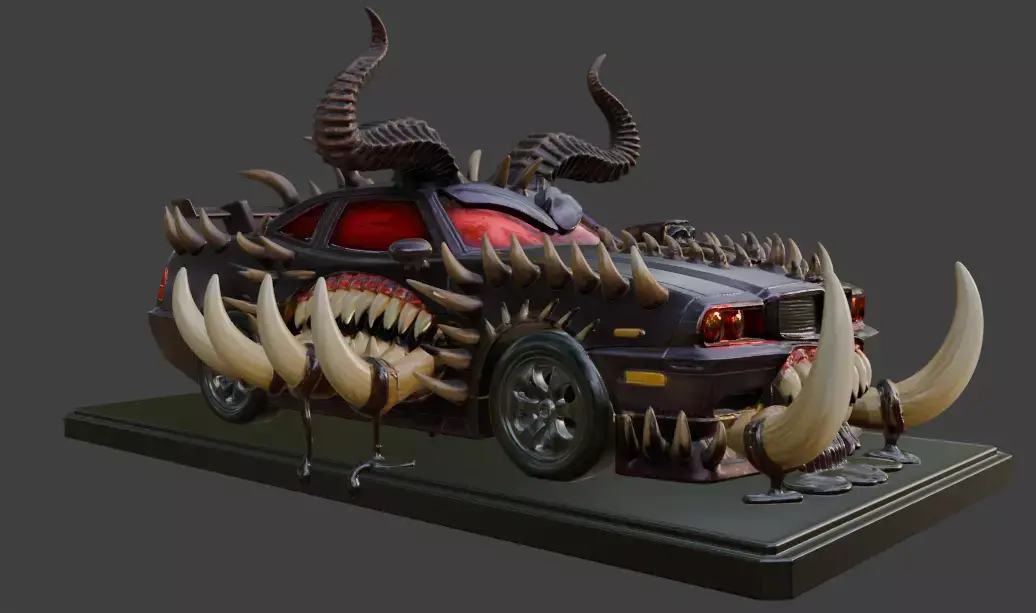 Unleash the fury of the underworld with the Halloween Beast Car, a nightmarish 3D model that transforms a classic sedan into a snarling, horned monster ready to prowl the streets on All Hallows' Eve. Adorned with jagged tusks, razor-sharp fangs, and twisted demonic horns, this vehicle glows with crimson eyes from its armored hood, evoking the essence of hellish speed and gothic horror. Perfect for Halloween-themed renders, game assets, or digital art projects, this intricately detailed model captures the thrill of supernatural automotive mayhem. Crafted with high-fidelity textures and dynamic posing on a sleek display stand, it's a must-have for creators seeking to blend automotive design with monstrous fantasy.