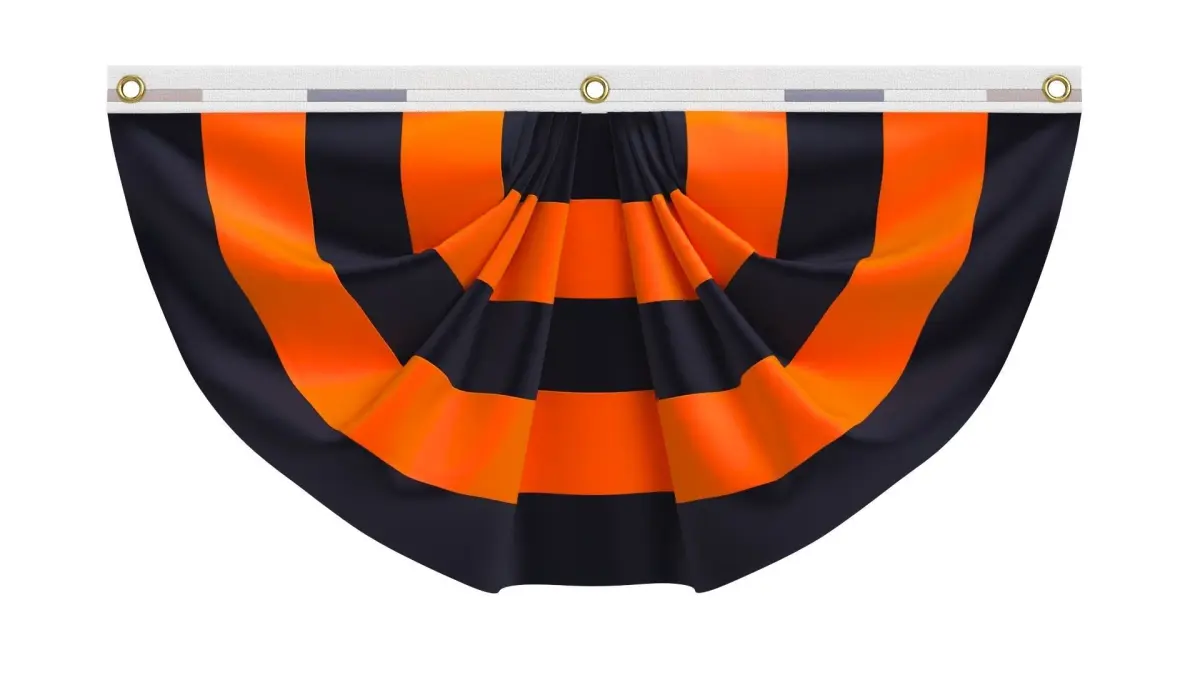 The Halloween Bunting Flag is a 3D model of a pleated semi-circle flag that can be used as a prop for various holiday celebrations such as Halloween, autumn masquerades, or carnival parties.