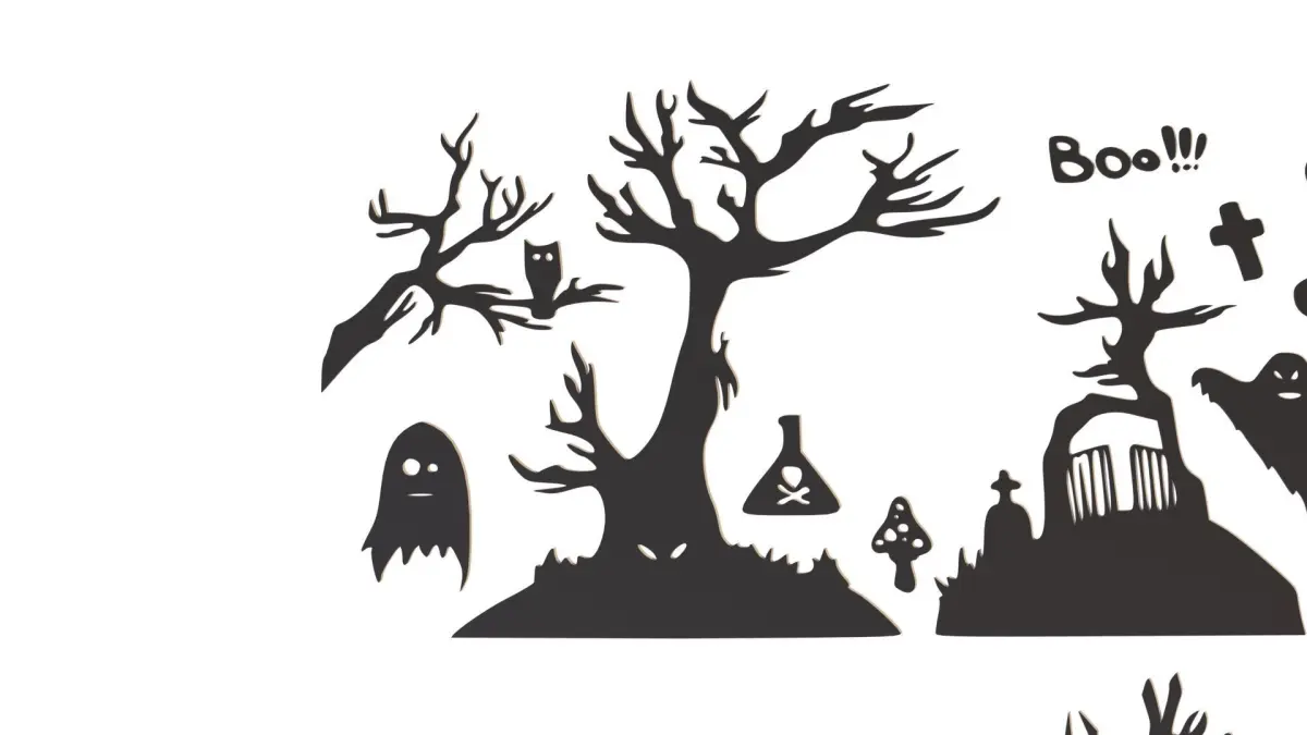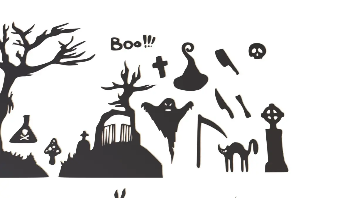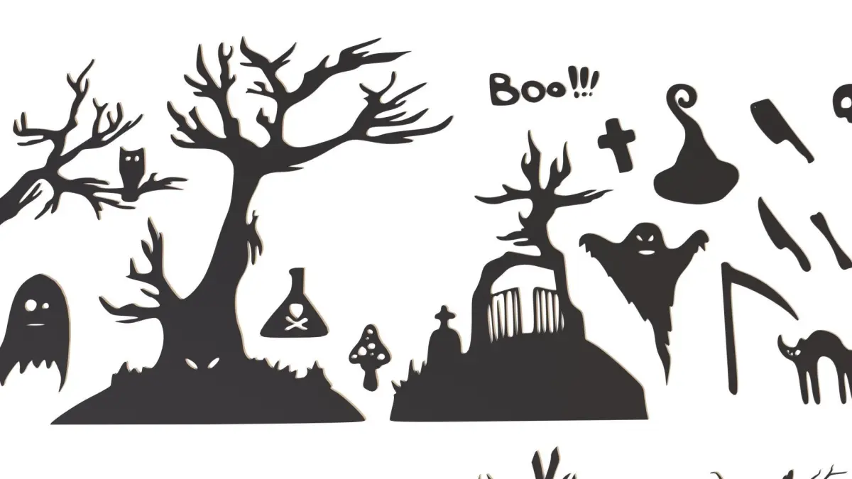 Halloween decor. A great set of decorative elements for the Halloween holiday. There are 45 jewelry items in the set. Completely ready for 3D printing, you can set any scale and thickness that suits you. Halloween decor will be a great decoration and decoration for the holiday.