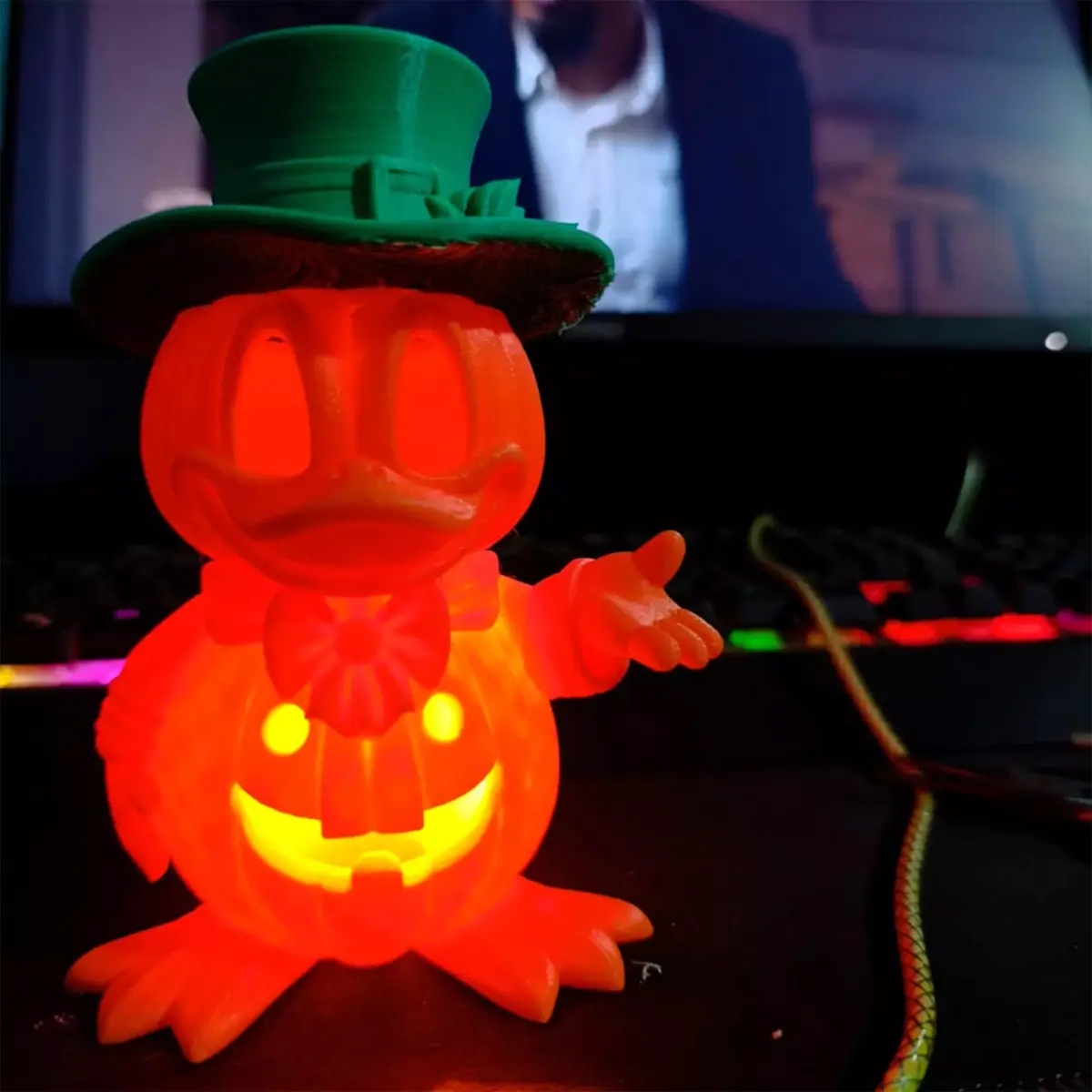 Decor version: a solid, cute display pumpkin of Donald Duck dressed in his Halloween outfit.