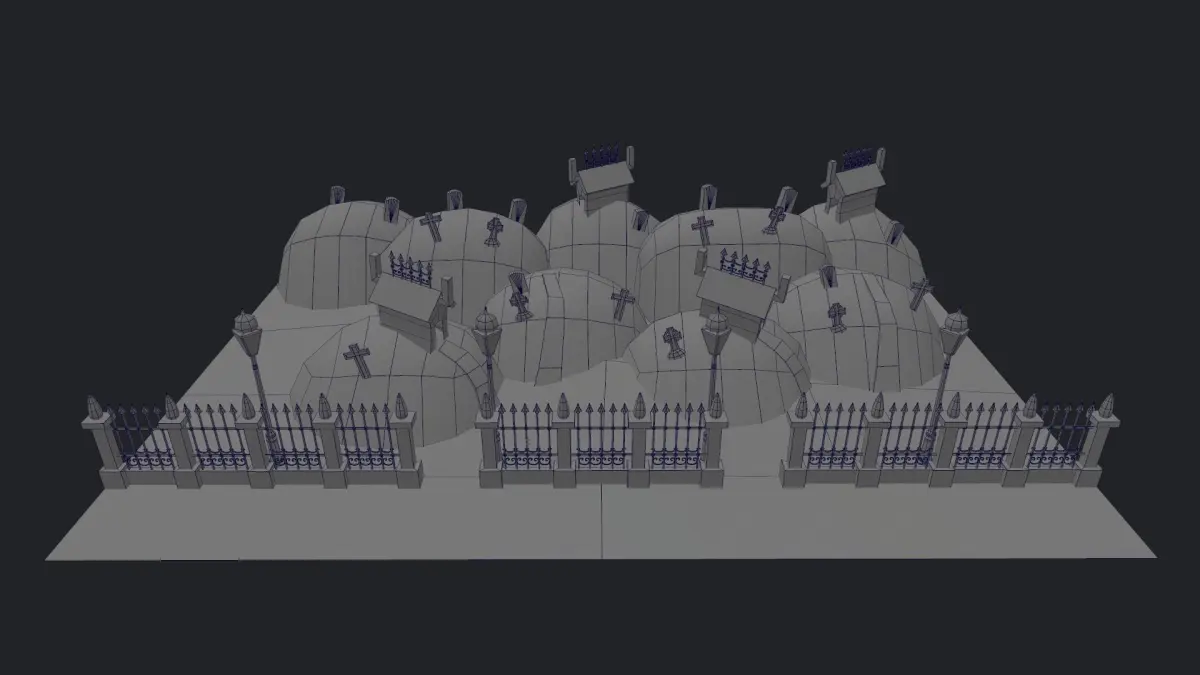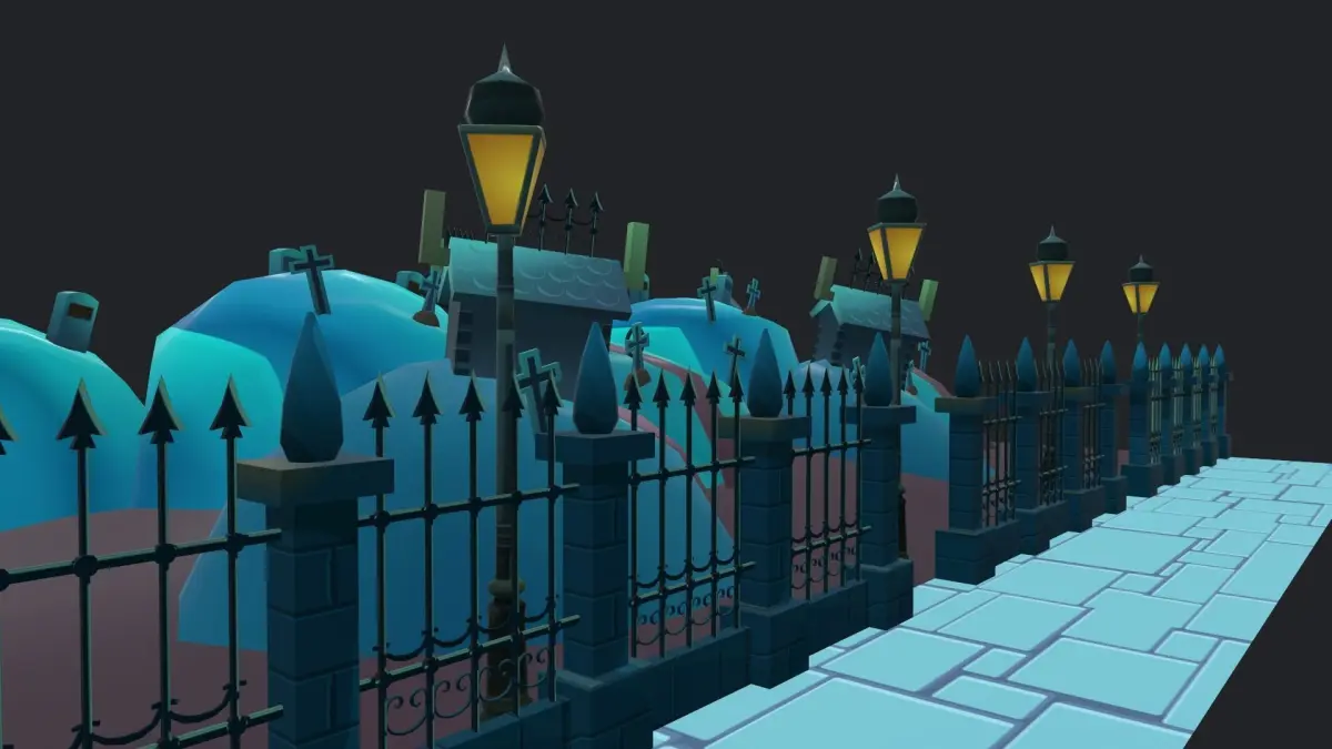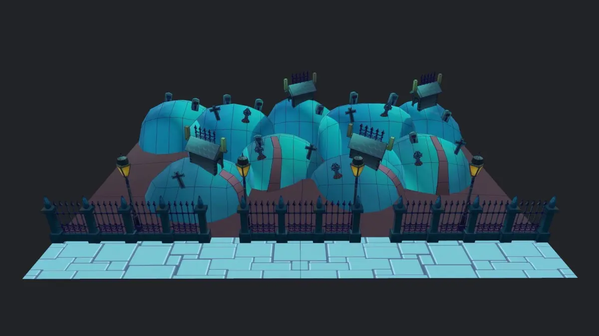 Lowpoly game ready 3d models of cartoon halloween graveyard for exterior scenes lowpoly optimized for game engines