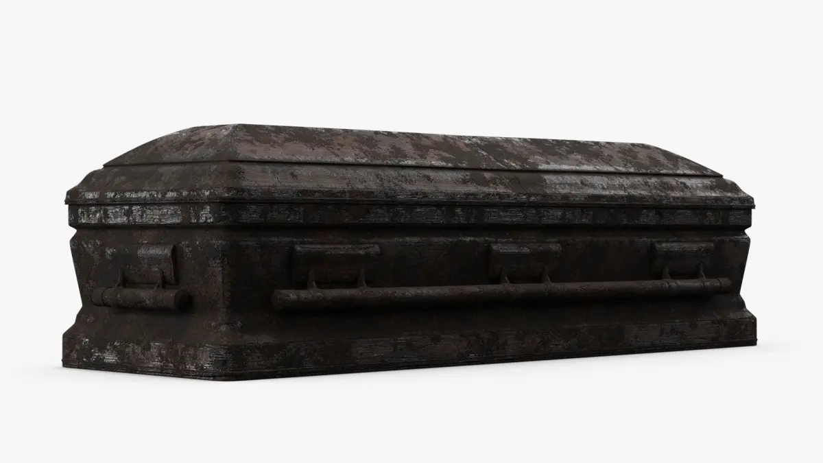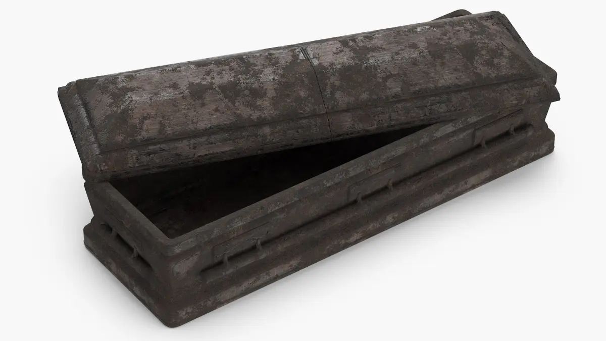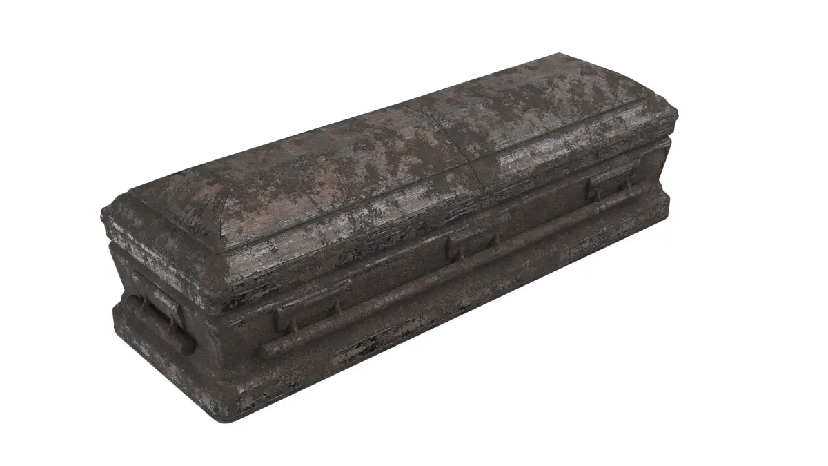Old Wooden Coffin Covered with Earth