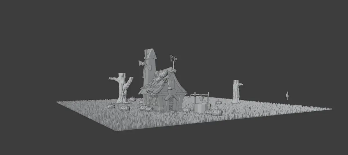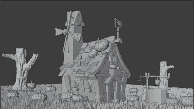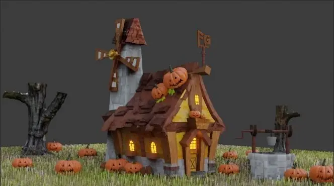 I tried to make a horror scene by this house and creepy pumpkins on it with animated air and particles and u can see it on youtube link with it
