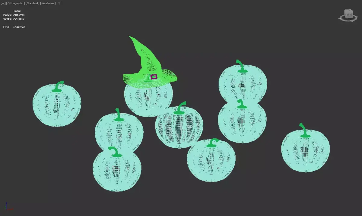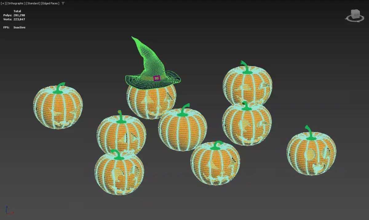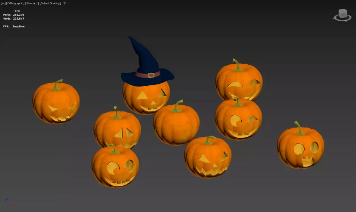 Halloween Jack O Lantern Collection with Witch Hat Decor 3D model