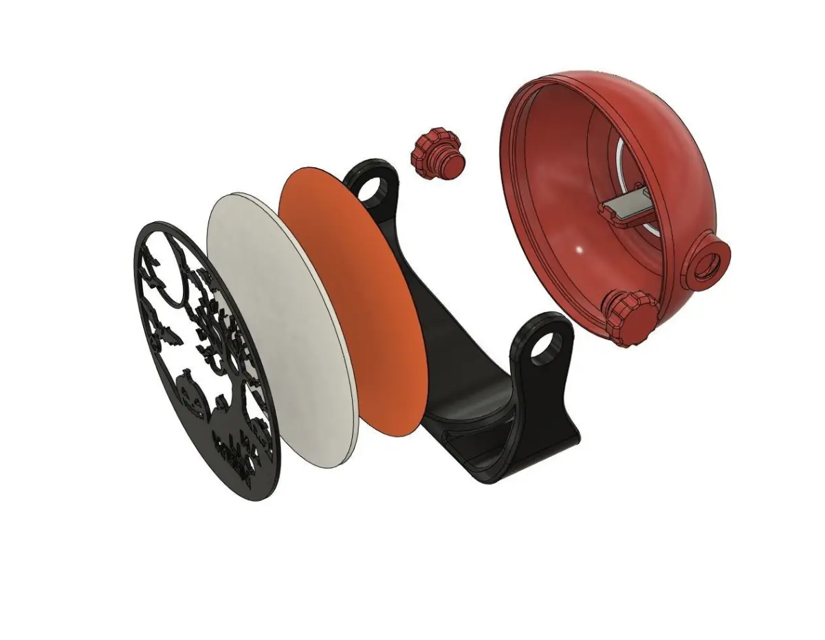 The 'glass' is made of 'opal' methacrylate, which distributes the light in that way. It can be bought at any DIY center.A template is included in '.dxf' so you can cut it on a cnc or print it on paper and use it as a guide.Also included is a file with a 0.8mm sheet to emulate methacrylate. It does not look bad, but the result of the methacrylate is better.