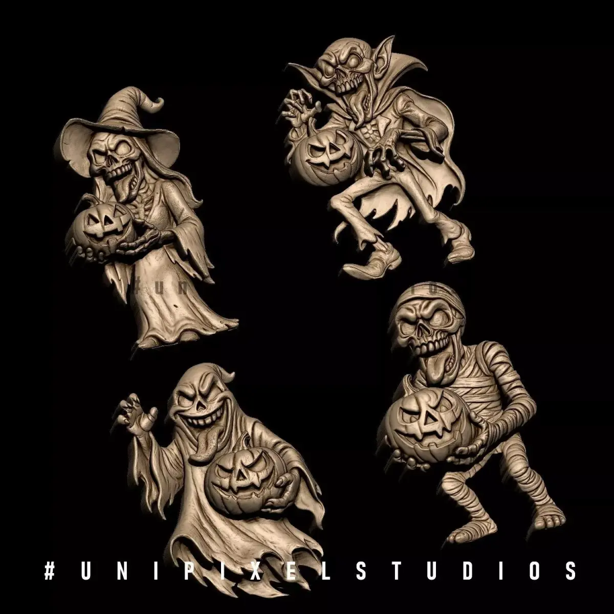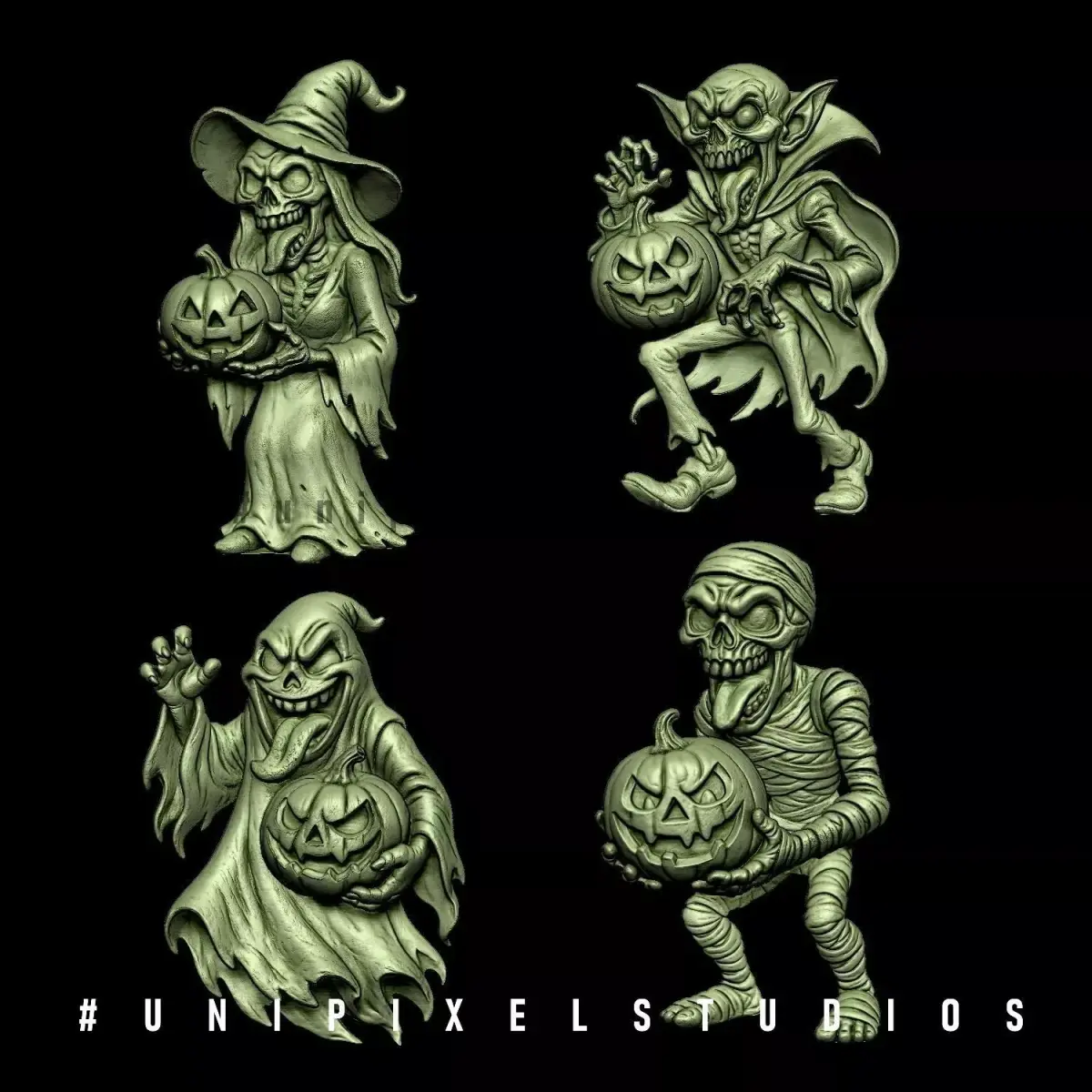 this is my design 3D Set of four Halloween monster characters, Mummy, Ghost,Dracula and Witch STL model ,3D design STL and this file digitally designed the models in 3dSoftware everythings for 3d printing STL , OBJ, and you can printed with any 3d printers, i refer resin 3D printer give best quality with detailing the most important , i added only the 3D prinatable Digital file and then you can scale the size easily