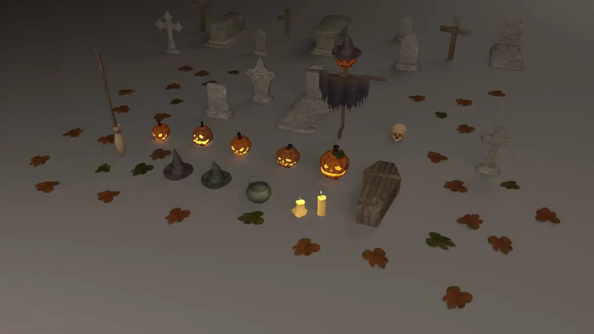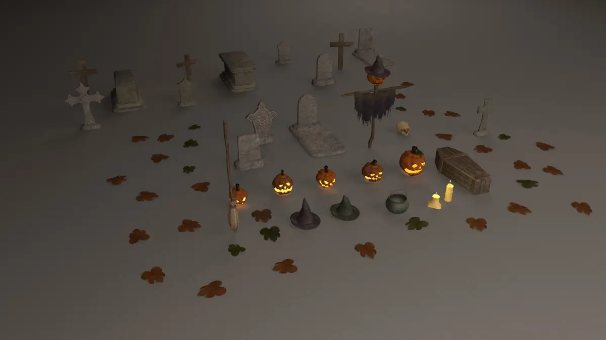 How scary!This halloween pack low poly 3d model for your game projects like pirate, MMORPG, strategy, fantasy, medieval, etc.The models were originally modeled in 3ds Max 2012 and rendered with Mental Ray.Contains 28 unique 3D models. Textures of 2/4k.With this pack each model costs you less then a 1$!