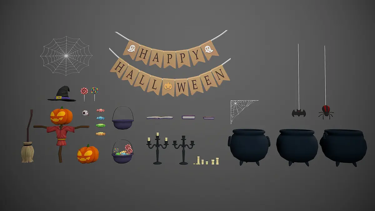 Low poly textured models of HALLOWEEN DECORATION PARTY AND CEMETERY (50 MODELS) . Well textured and ready for Virtual Reality (VR), Augmented Reality (AR), games and other real-time apps for handheld devices.
