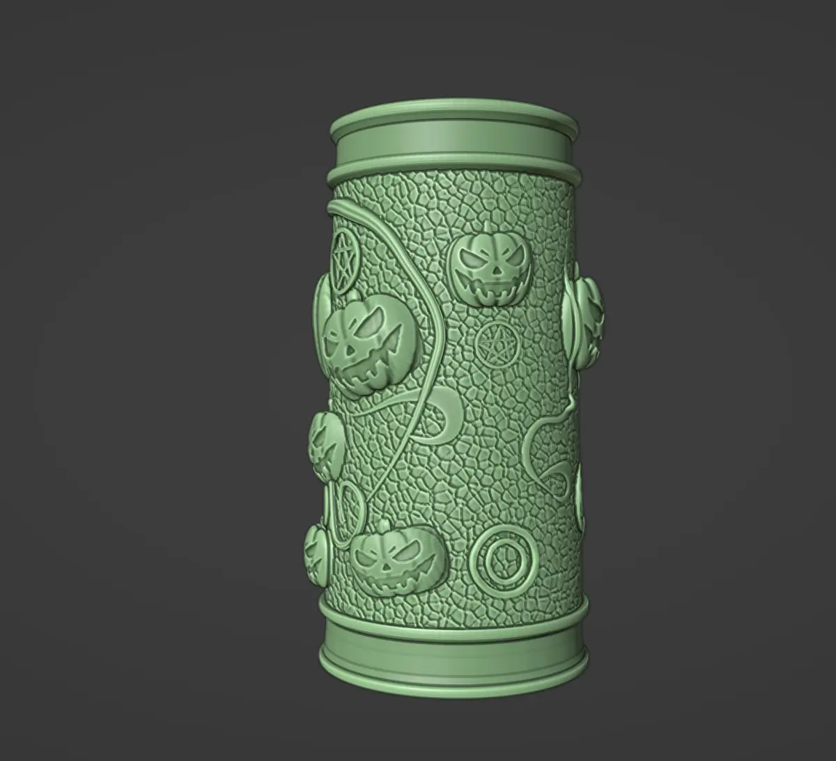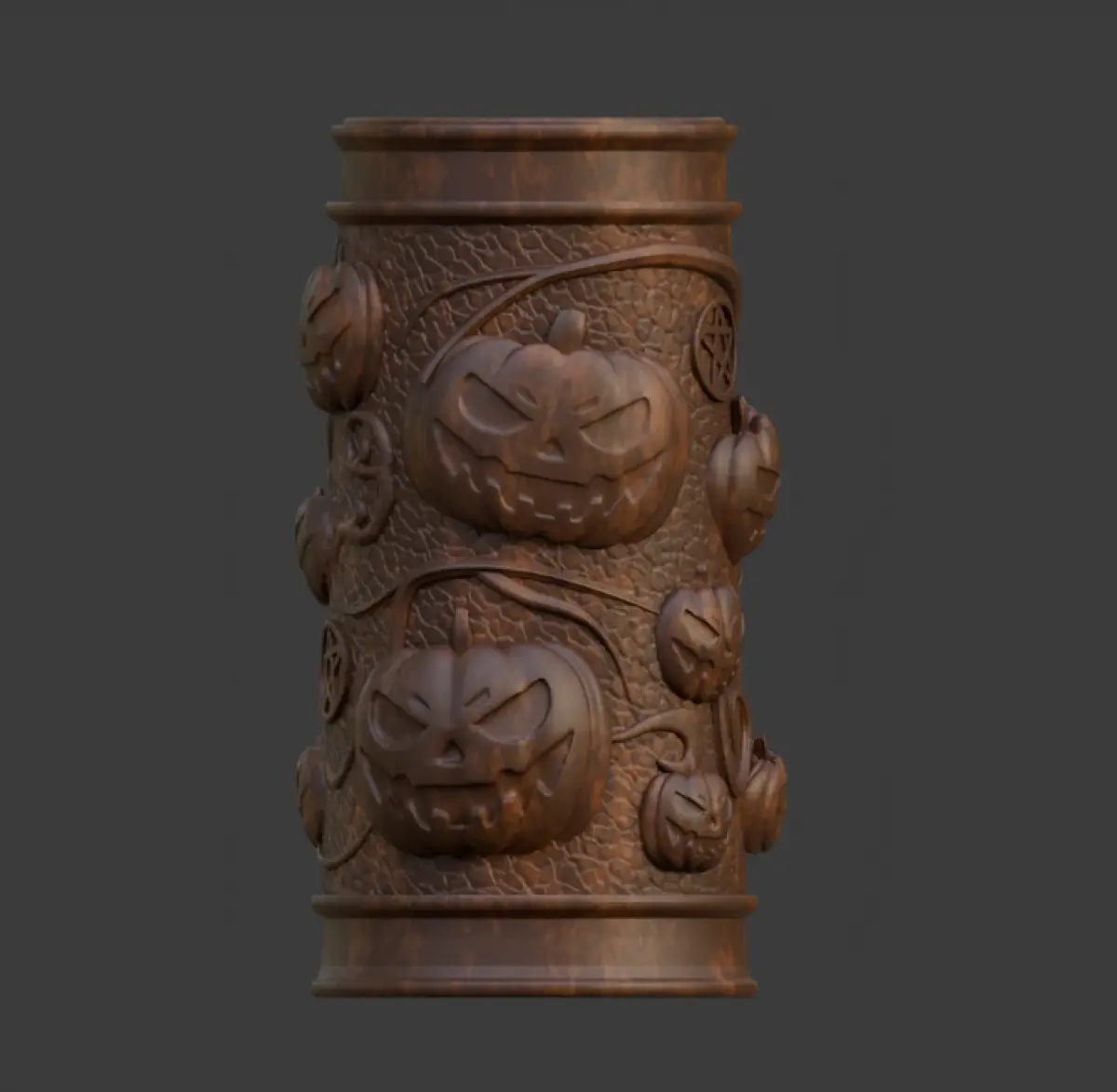 Add a frightfully fun touch to your desk or table with this Halloween pencil holder/cup! Surrounded by cute pumpkins, this unique design is perfect for both decoration and organizing your pens, pencils, or whatever you need handy.