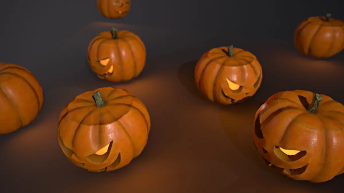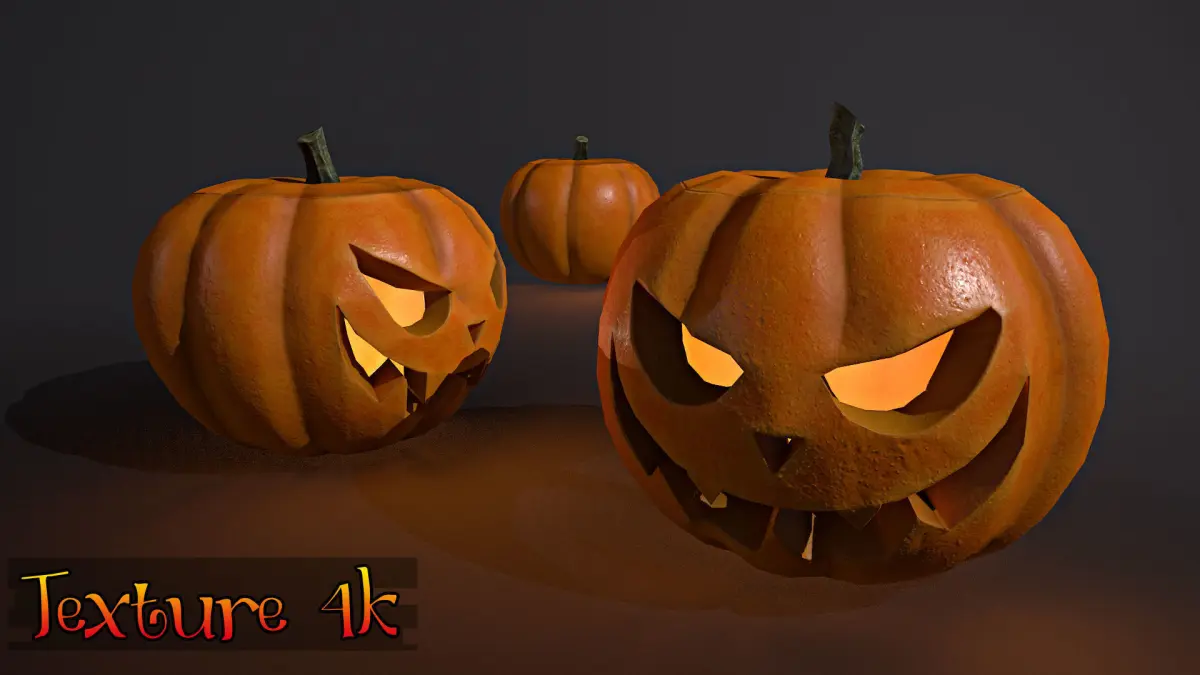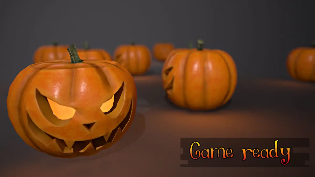 Festive evil pumpkins for halloween are perfect for your render project or game engine project.