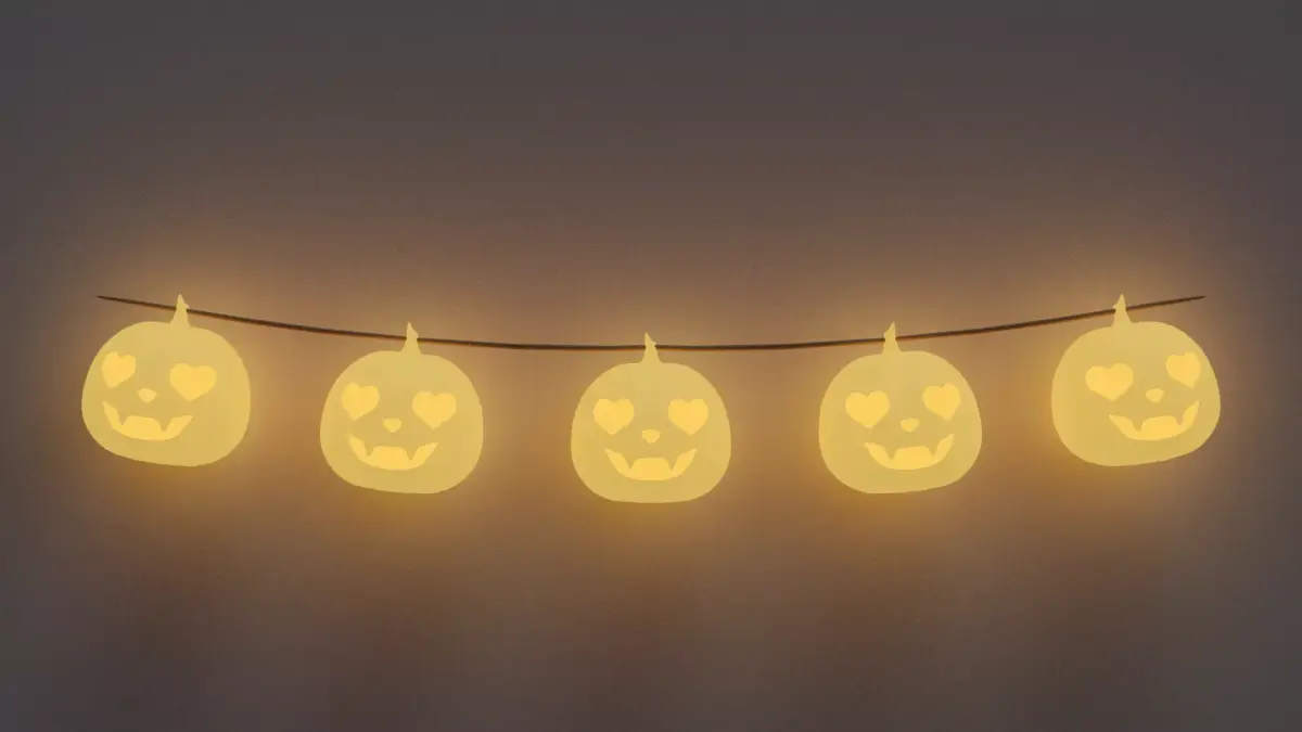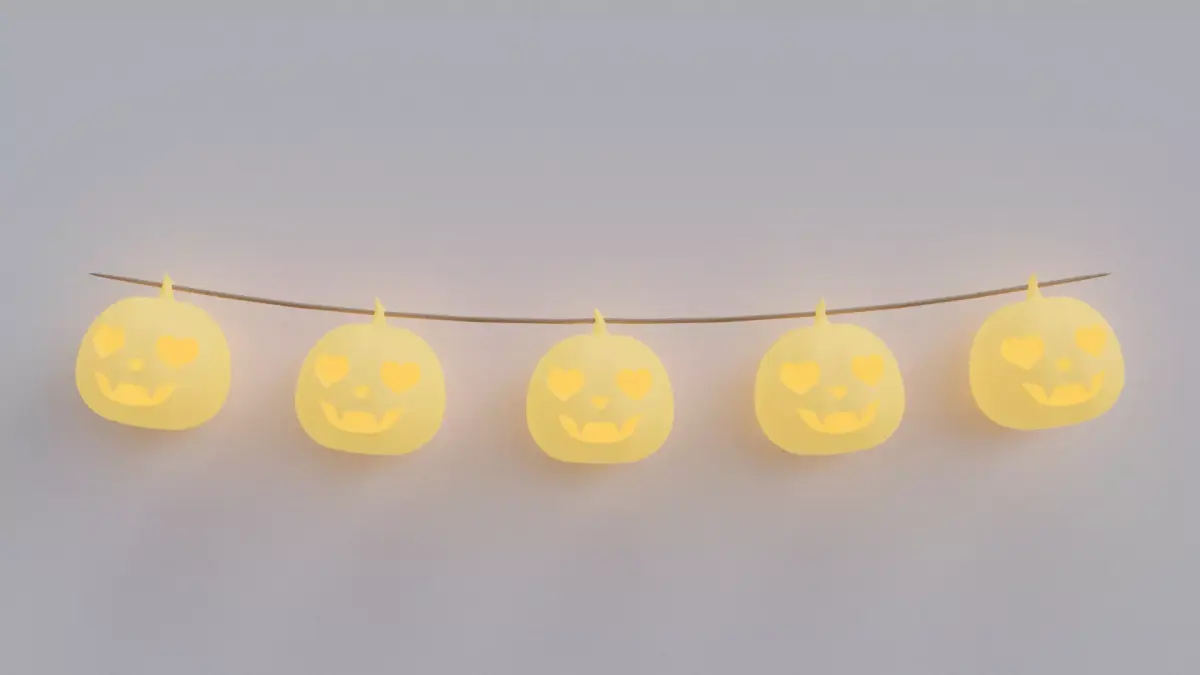 Add a touch of warmth and charm to your Halloween-themed 3D worlds with this glowing pumpkin garland.