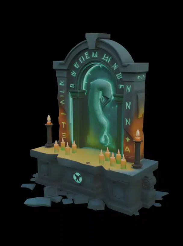 This altar is designed with stylized elements. Whether you’re building a haunted dungeon, creating a witch’s shrine, or just adding a unique piece to your Halloween setup – this model is sure to stand out.