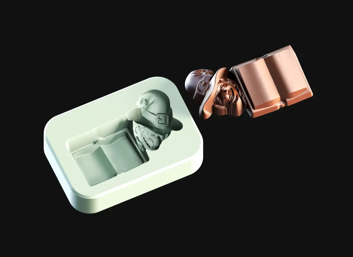 Bring some magical charm to your Halloween treats with this 3D printable chocolate mold of a mischievous witch reading a spellbook! The design includes a flat, customizable surface (the book), allowing you to add personalized text, designs, or decorations to create unique chocolates or party favors. This STL file is optimized for 3D printing and can be used to create chocolate or silicone molds for casting resin, soap, or other materials.