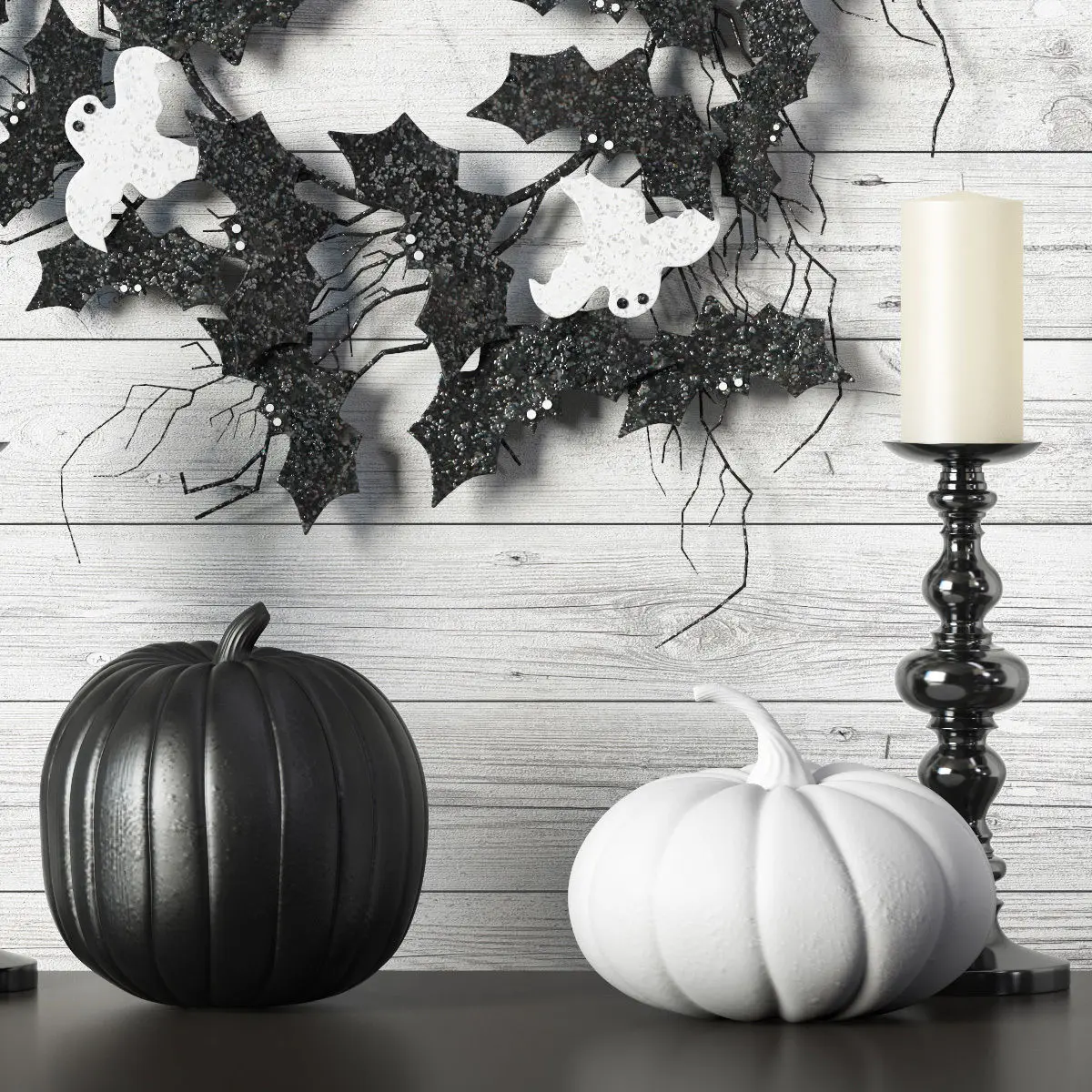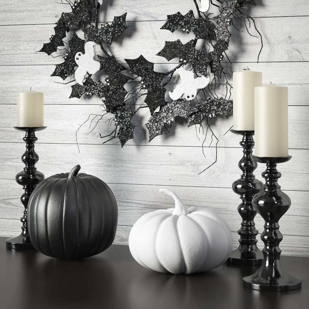 Halloween wreath black and white. Decor for the living room.Archives included: textures, materials (vray), FBX, OBJ, 2011 max, 2014 max scene.Model was created in 3ds Max 2014.Shader for V-Ray 3.30.05TurboSmooth to taste