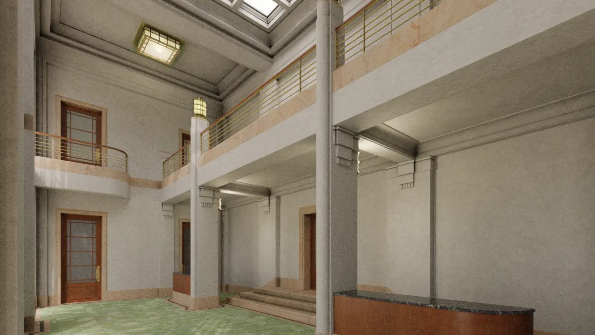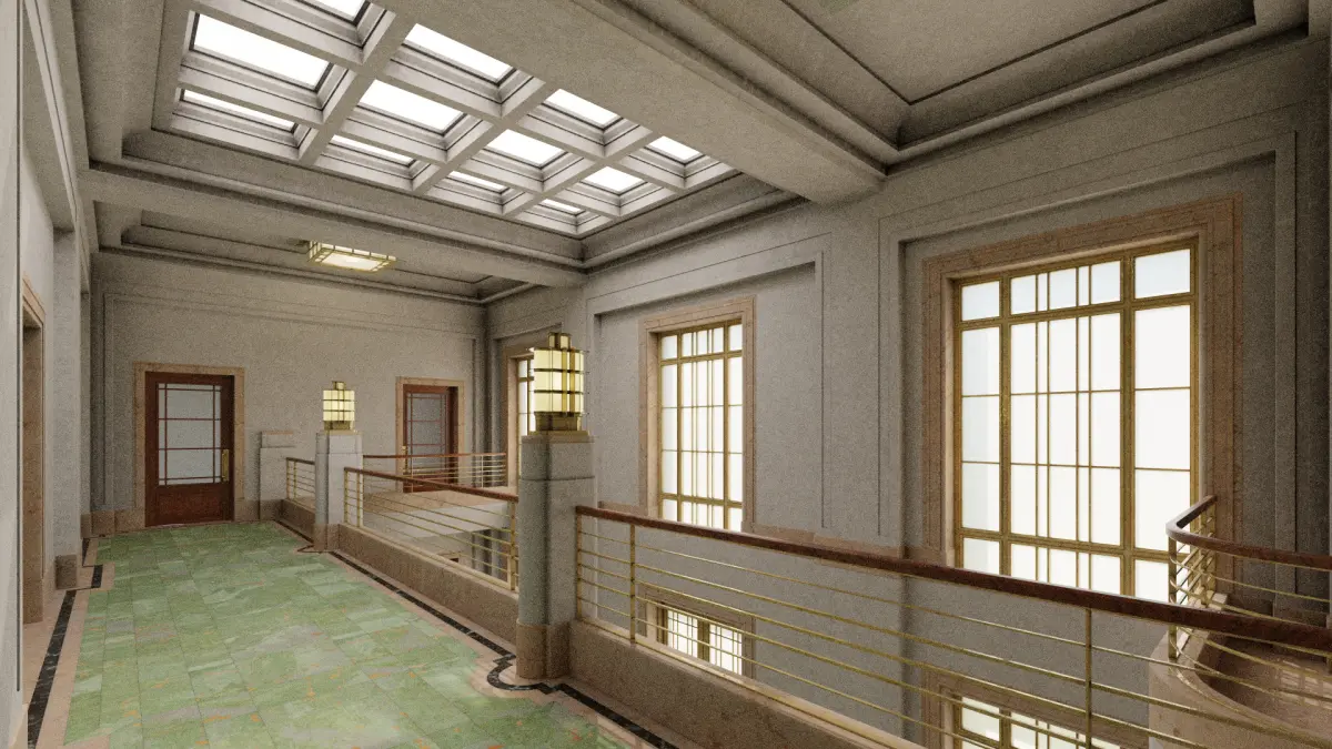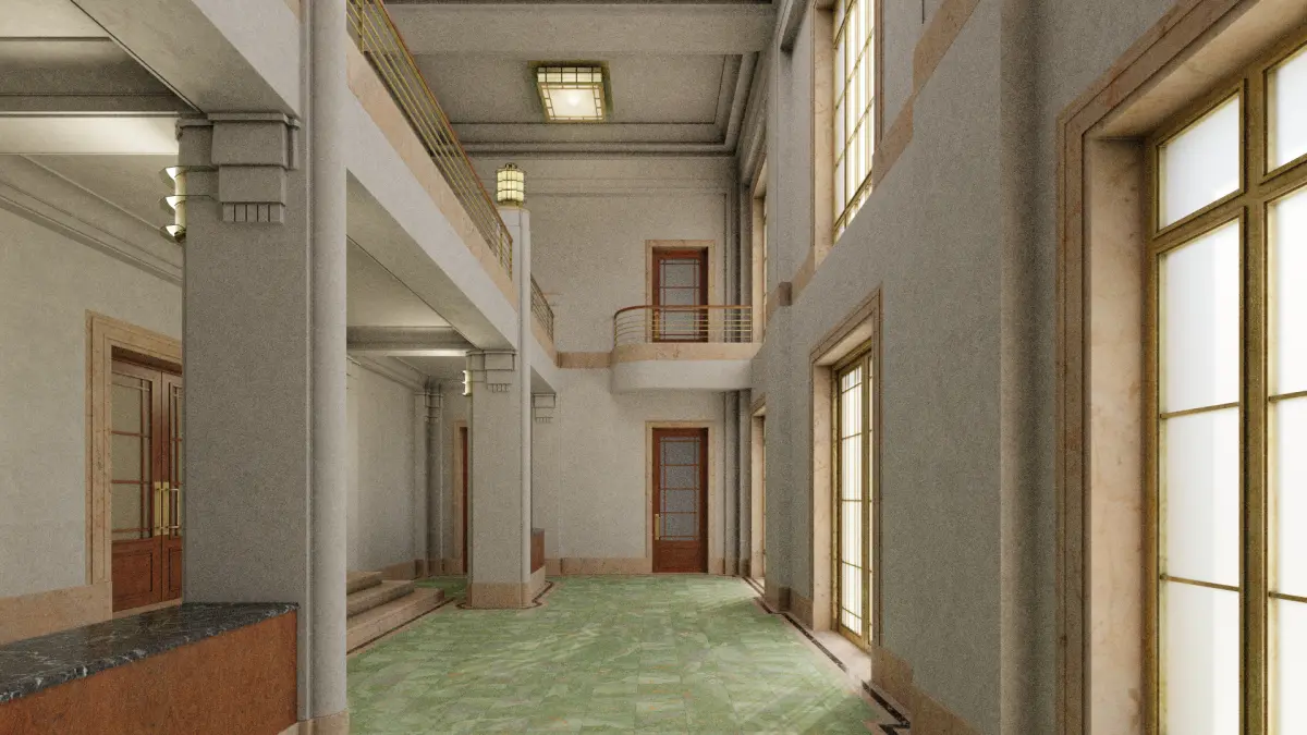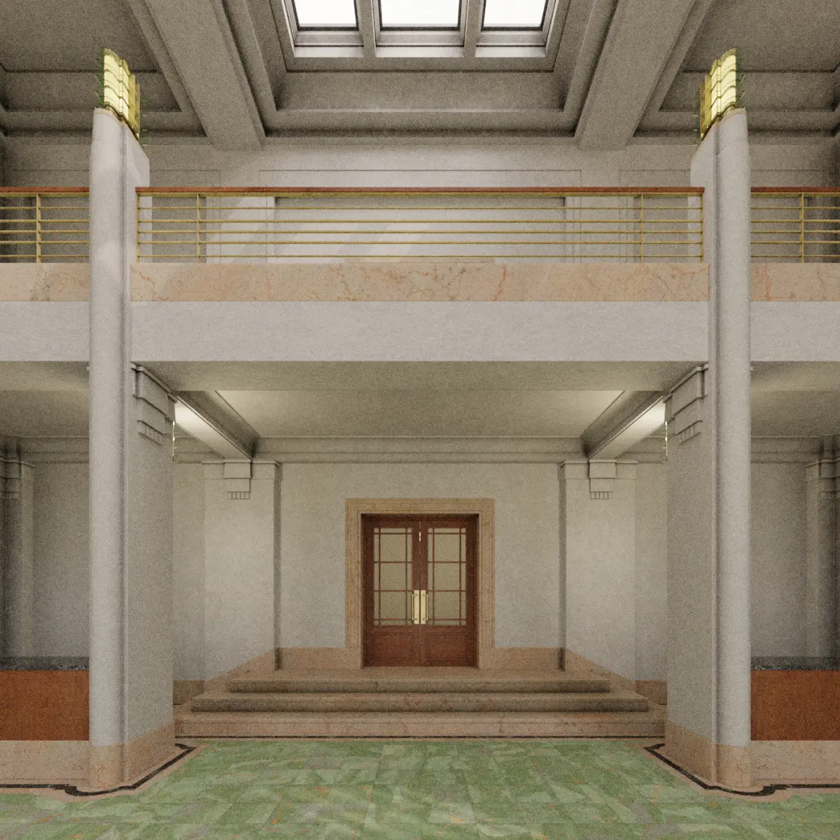 Detailed model of an Art Deco Hallway. Suitable for high resolution close-ups. Real world scale. Cameras are placed at eye level (~1.65m / 5'5'').