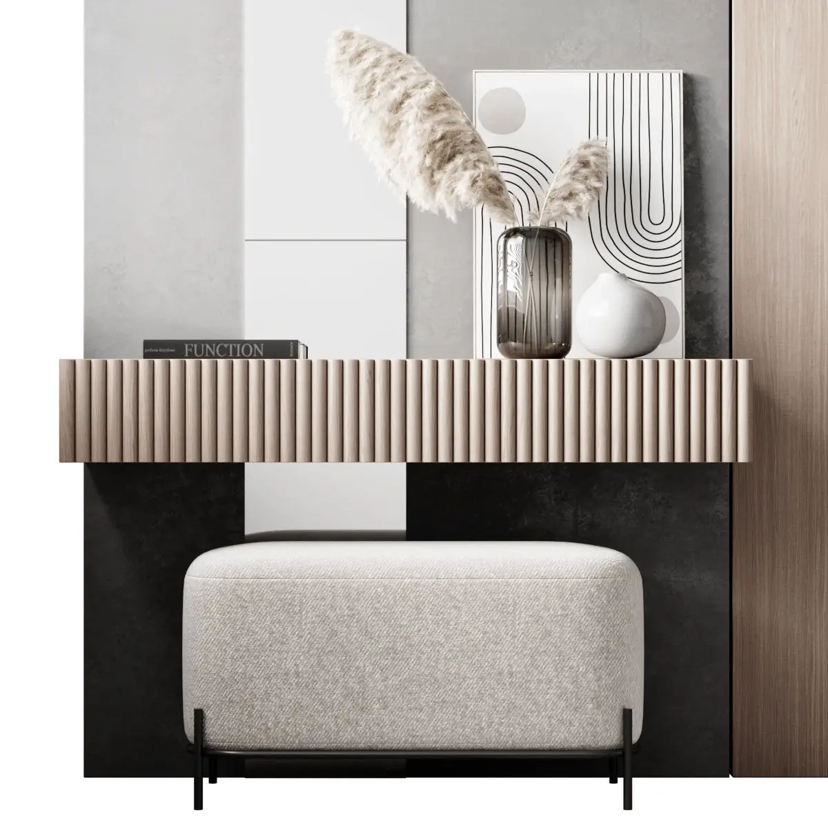 Hallway 5 modern bedroom with round mirror on wall 3D model