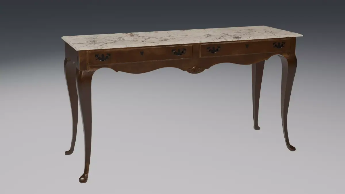 Queen Anne-style table (16″ × 52″ × 30″ tall) with 7 different textures: