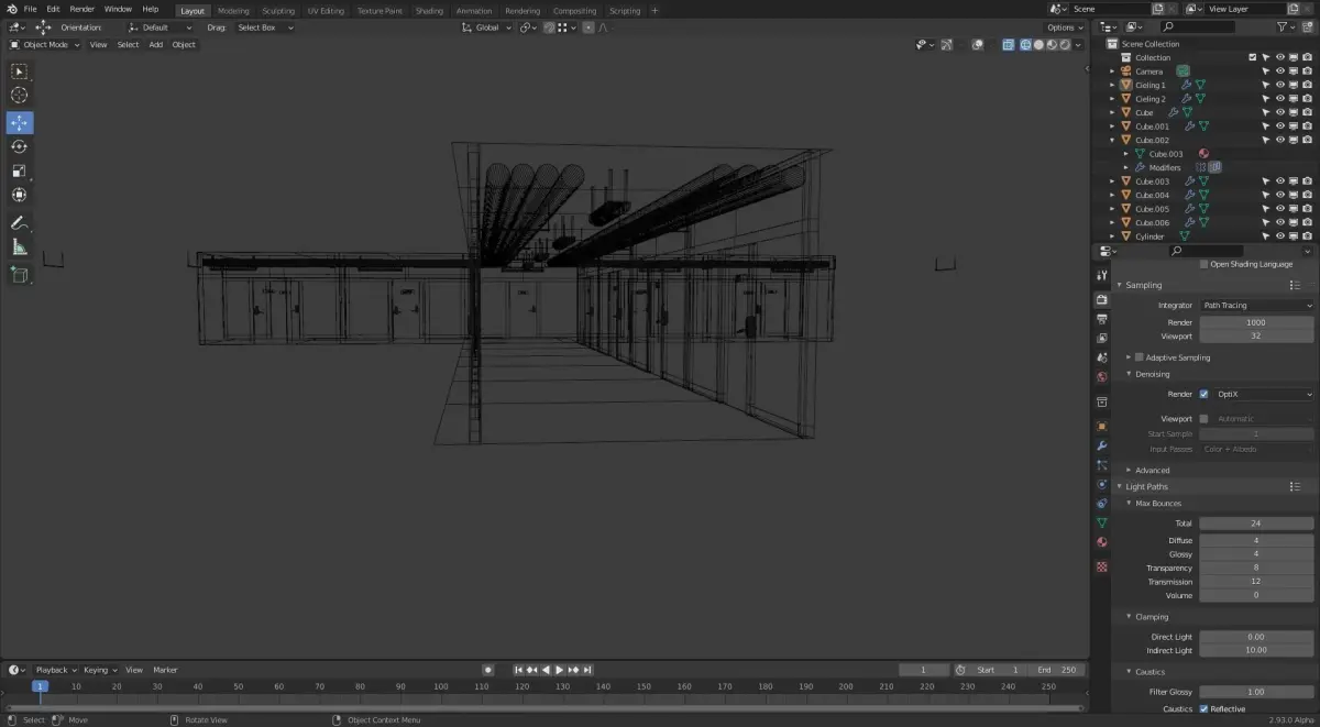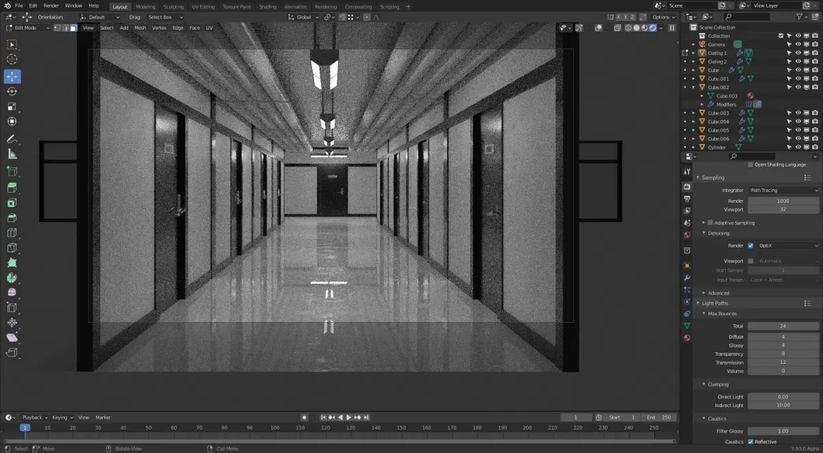 Hallway corridor in office building - 3D model