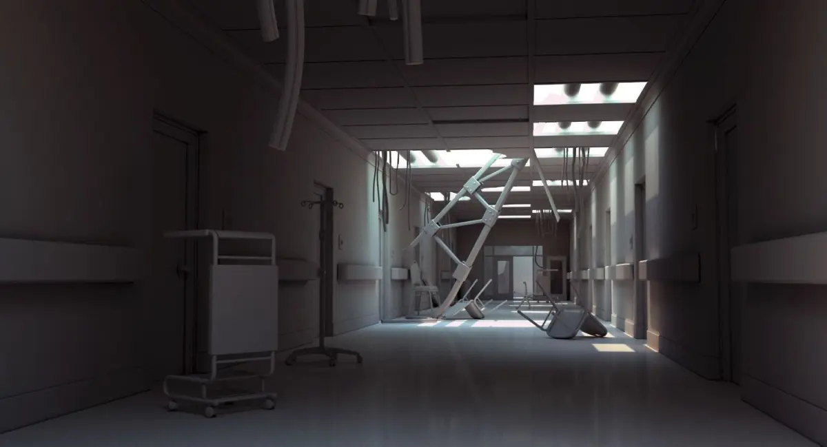 HIGHLY DETAILED 3D MODEL OF A DAMAGED HALLWAY
