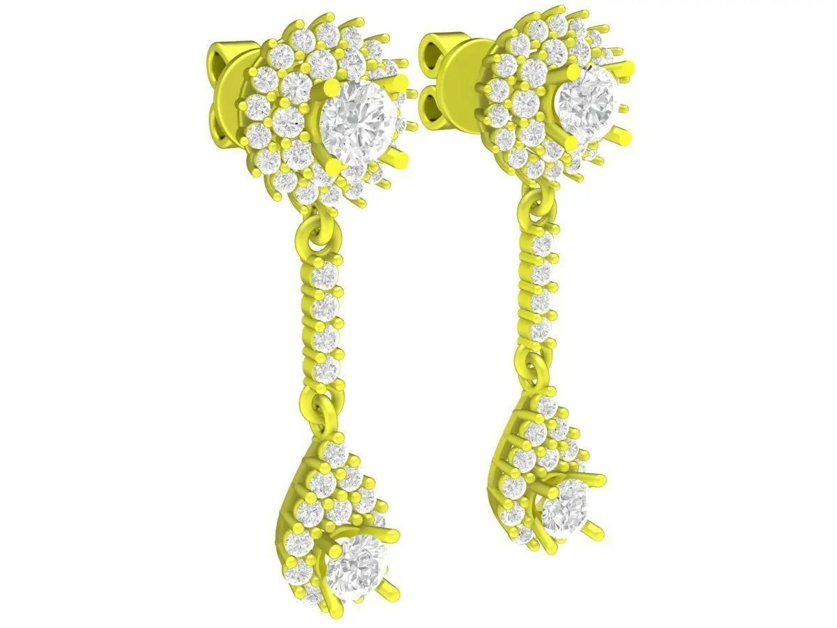 The balanced proportions and articulated drop connection allow natural movement, enhancing light reflection and visual appeal when worn. The structure supports various gemstone options, including diamonds, cubic zirconia, or colored stones, making the model versatile for customization.