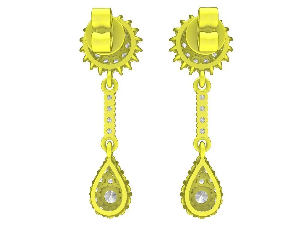 This halo drop earrings 3D jewelry model features a classic round halo top combined with an elegant dangling teardrop element. The design is fully pavé-set, creating strong brilliance and a refined luxury appearance suitable for fine jewelry collections.
