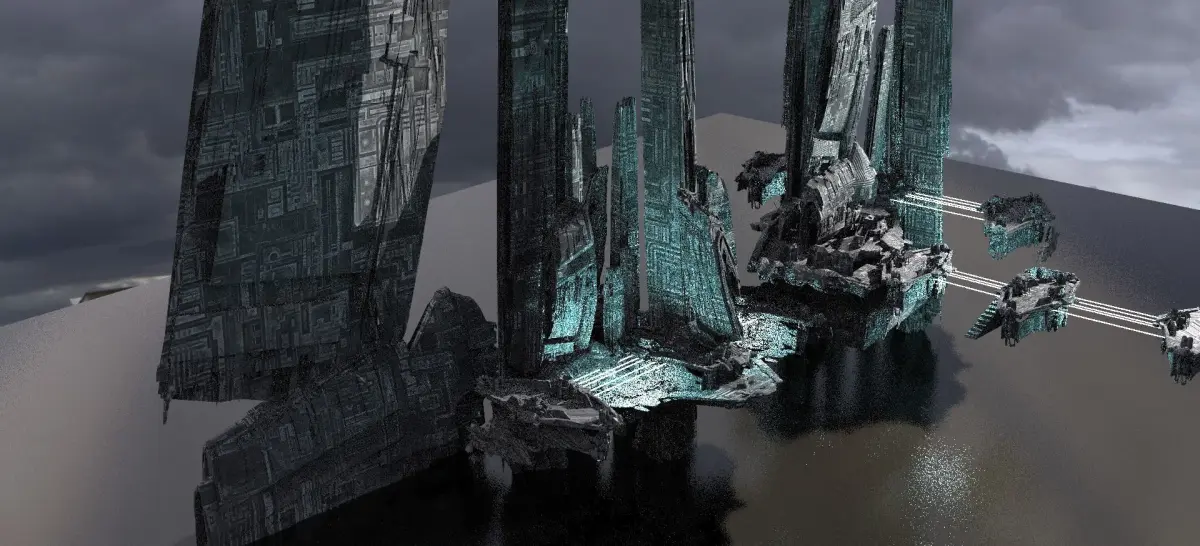 Halo Forerunner Inspired Gateway with bridge hologram! 3D! Hologram is made by turning the thin rectangle walkways into light sources like in my preview images !Tiled Textures Provided !!