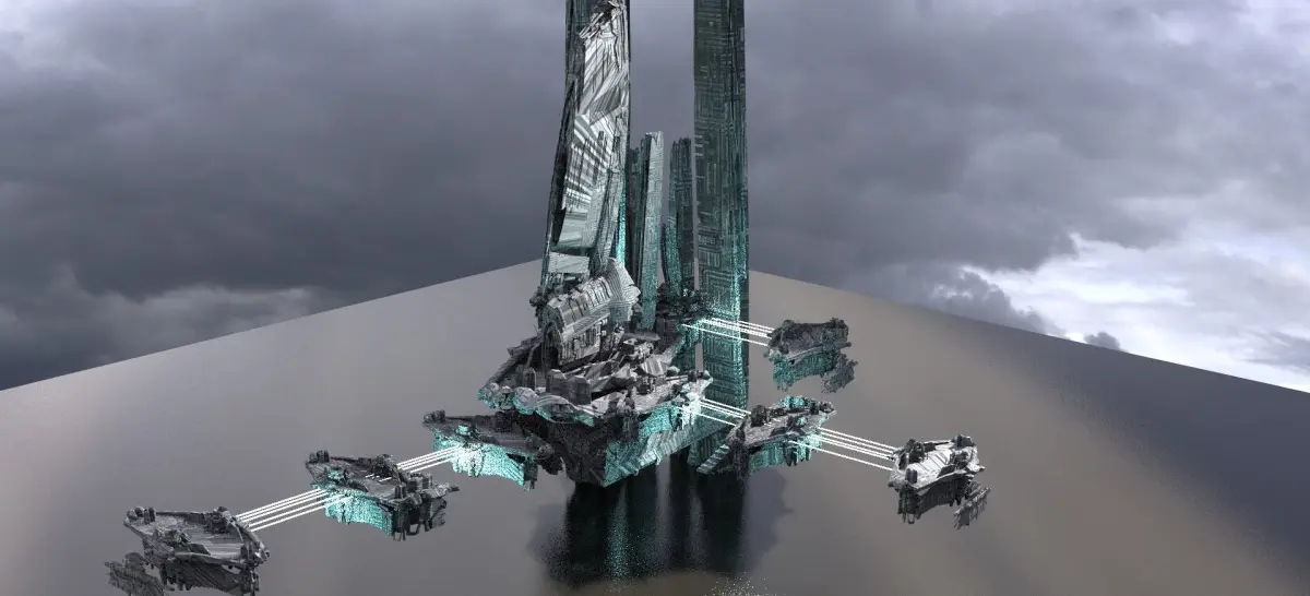 Halo Forerunner Inspired Gateway with bridge hologram! 3D! Hologram is made by turning the thin rectangle walkways into light sources like in my preview images !Tiled Textures Provided !