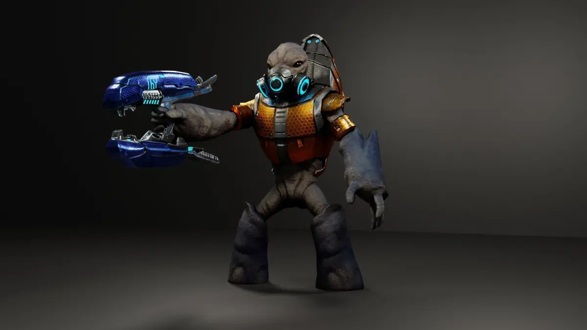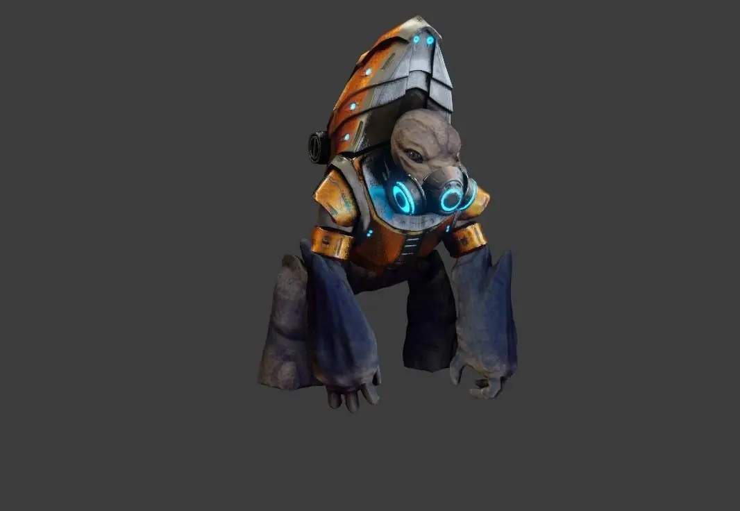 The model has 3 materials, the grunt body, armor/mask, and eyes. The textures for the body and armor/mask are included, the eye is just a regular black material with high roughness value