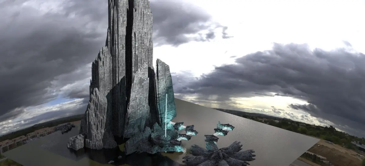 Halo Forerunner Inspired Gateway with bridge hologram! 3D! Hologram is made by turning the thin rectangle walkways into light sources like in my preview images !Tiled Textures Provided !