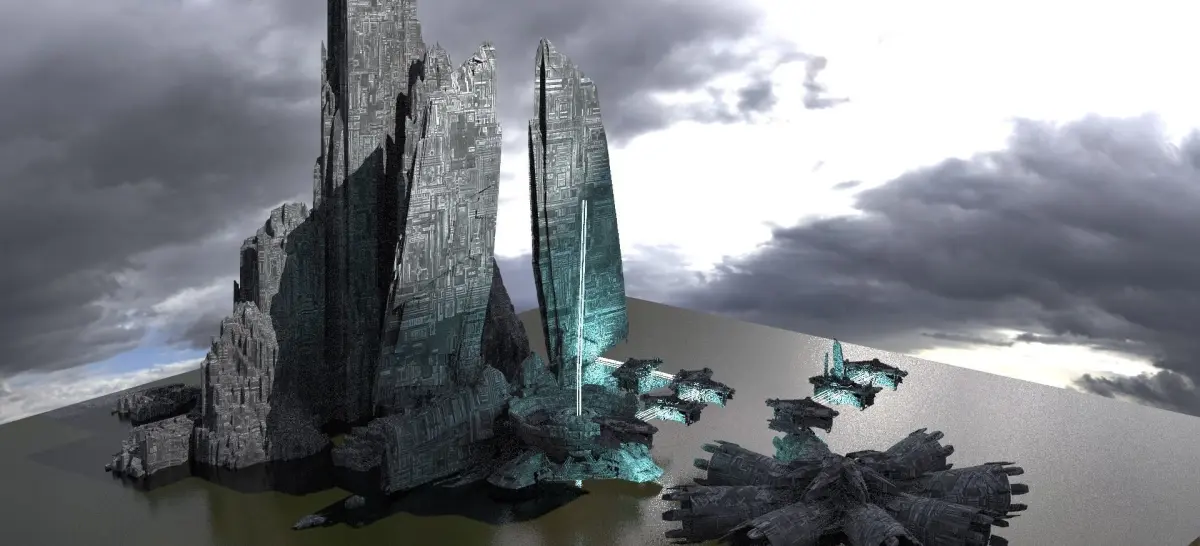Halo Forerunner Inspired Gateway with bridge hologram! 3D! Hologram is made by turning the thin rectangle walkways into light sources like in my preview images !Tiled Textures Provided !