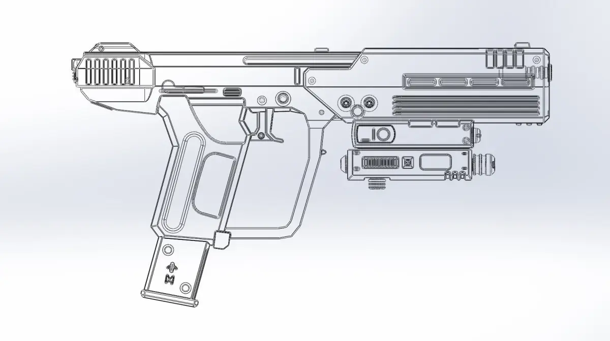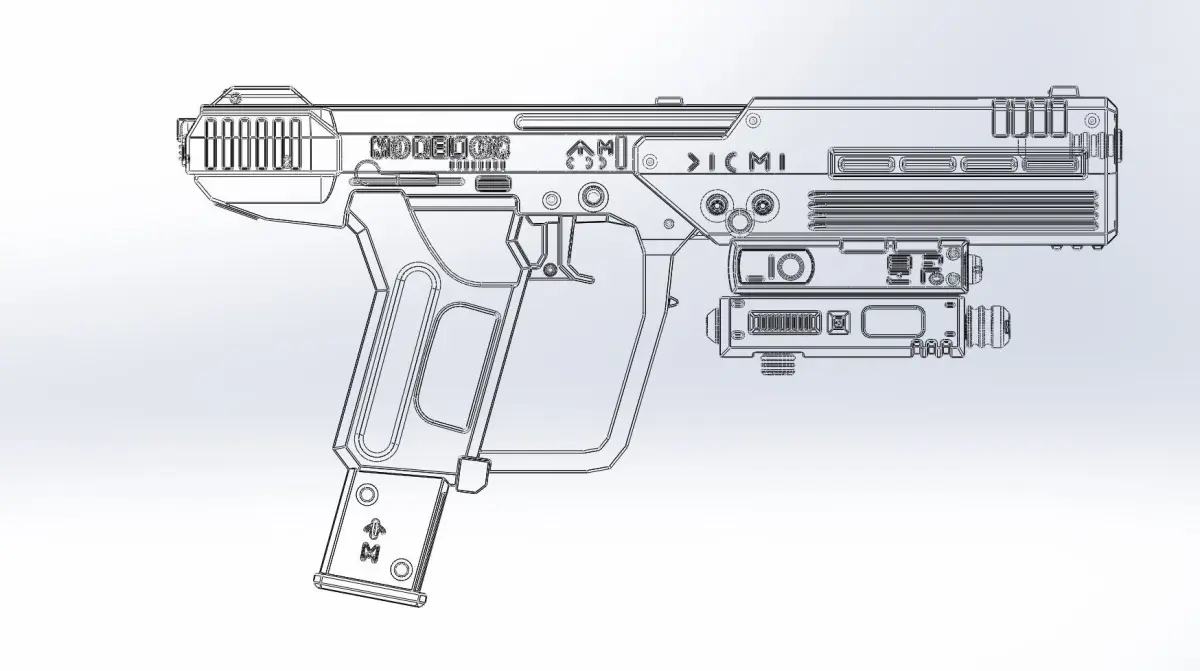 A basic model of the Socom pistol from the videogame Halo ODST made by commissionthis includes both a version with no text and one with simplified engraved text