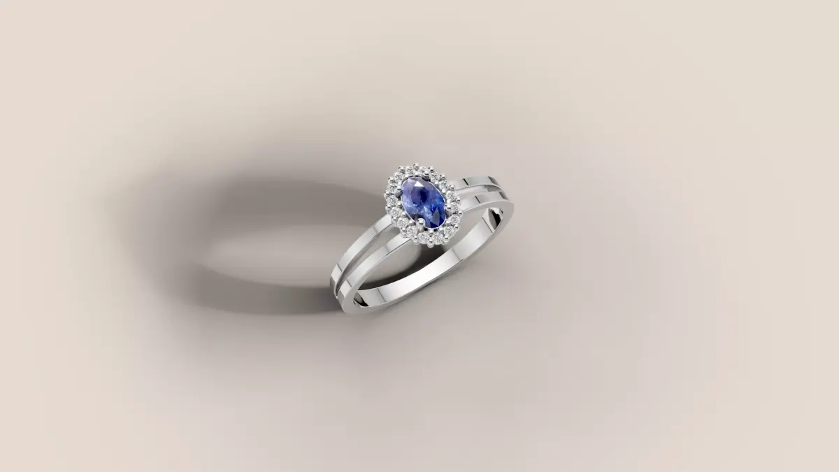 Precisely modeled in Rhinoceros, this elegant halo engagement ring features a refined contemporary design with a classic oval center stone surrounded by a delicate pavé halo. The elevated gemstone setting allows excellent light entry, enhancing brilliance while ensuring secure mechanical stability.