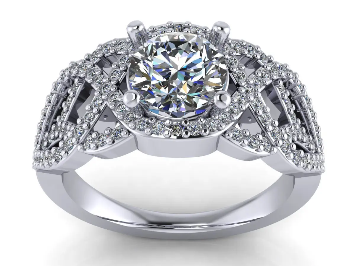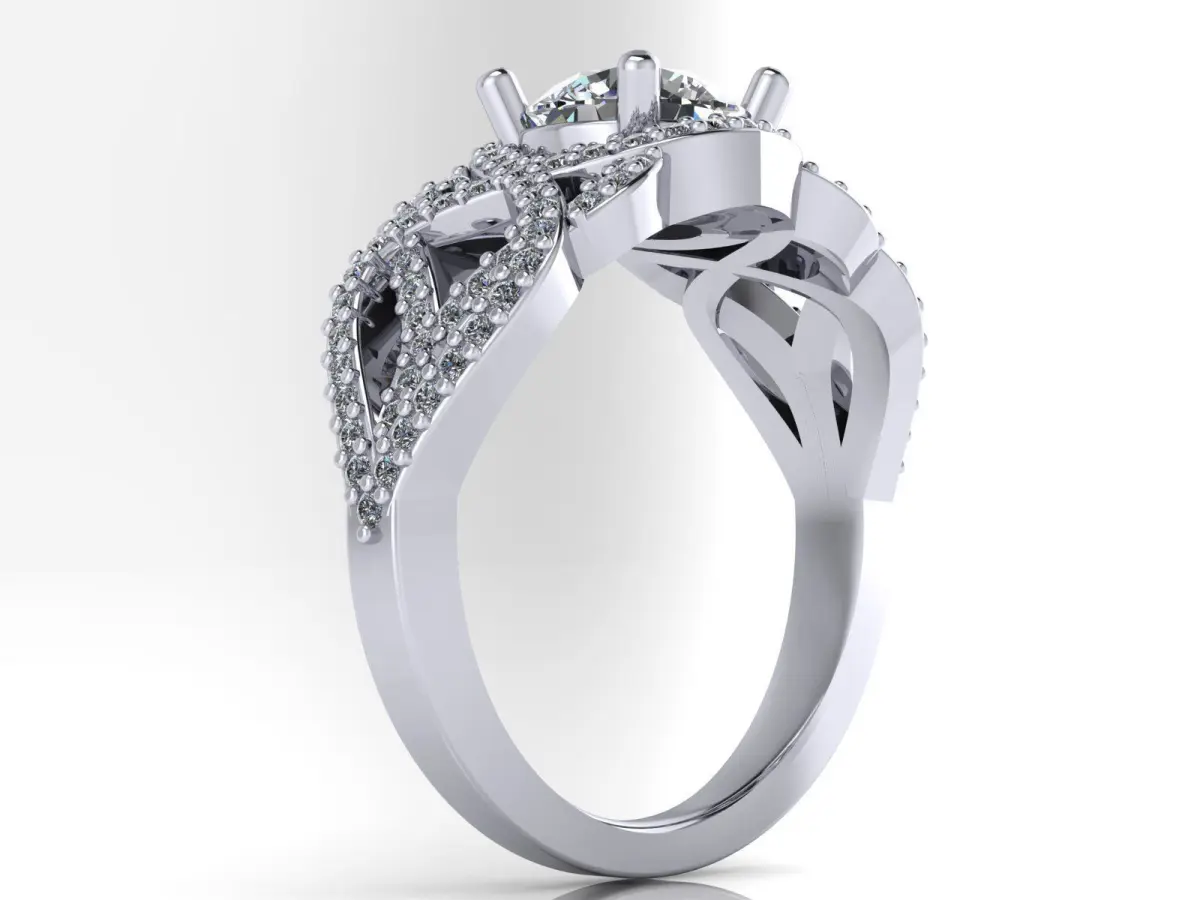 Print Ready 3D CAD Models of the Luxury Statement Ring with a 1ct round center stone and 1mm melee stones. The models are prepared for production, reason why prongs may look a bit longer (it is useful for post-production and easily setting the stones)