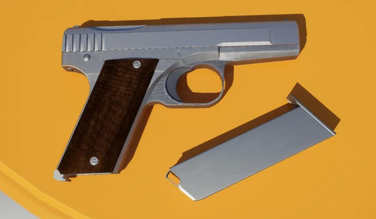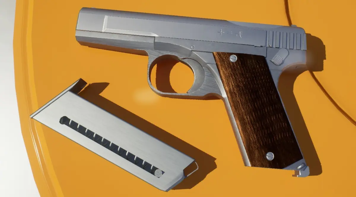 Japanese 8mm Hamada Type 2 Pistol Model. Textured FBX with 4 materials (3 textures each, Base Color, Normal Map and OcclusionRoughnessMetallic) in 4k, low poly is 5.944 Tris and 5.830 Vertices, all parts are rigid (except the magazine) and .Blend 2.83 with low poly for game and high poly for bake and re-texture.