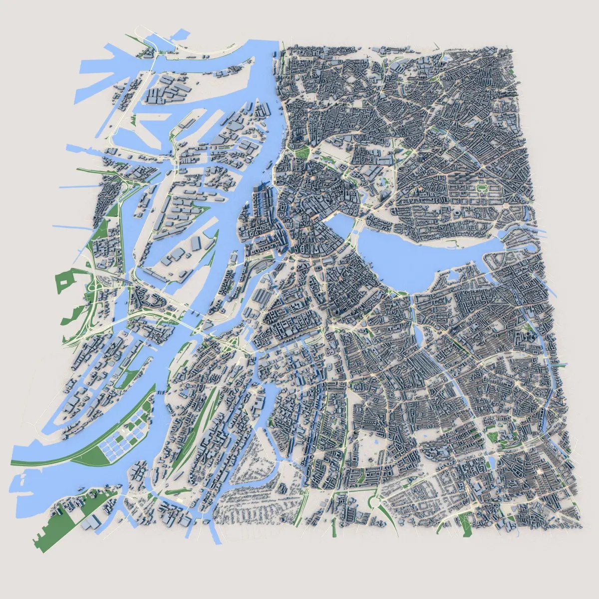 Hamburg City Germany Map 3D Model